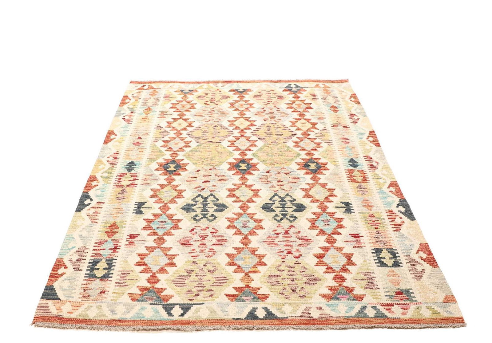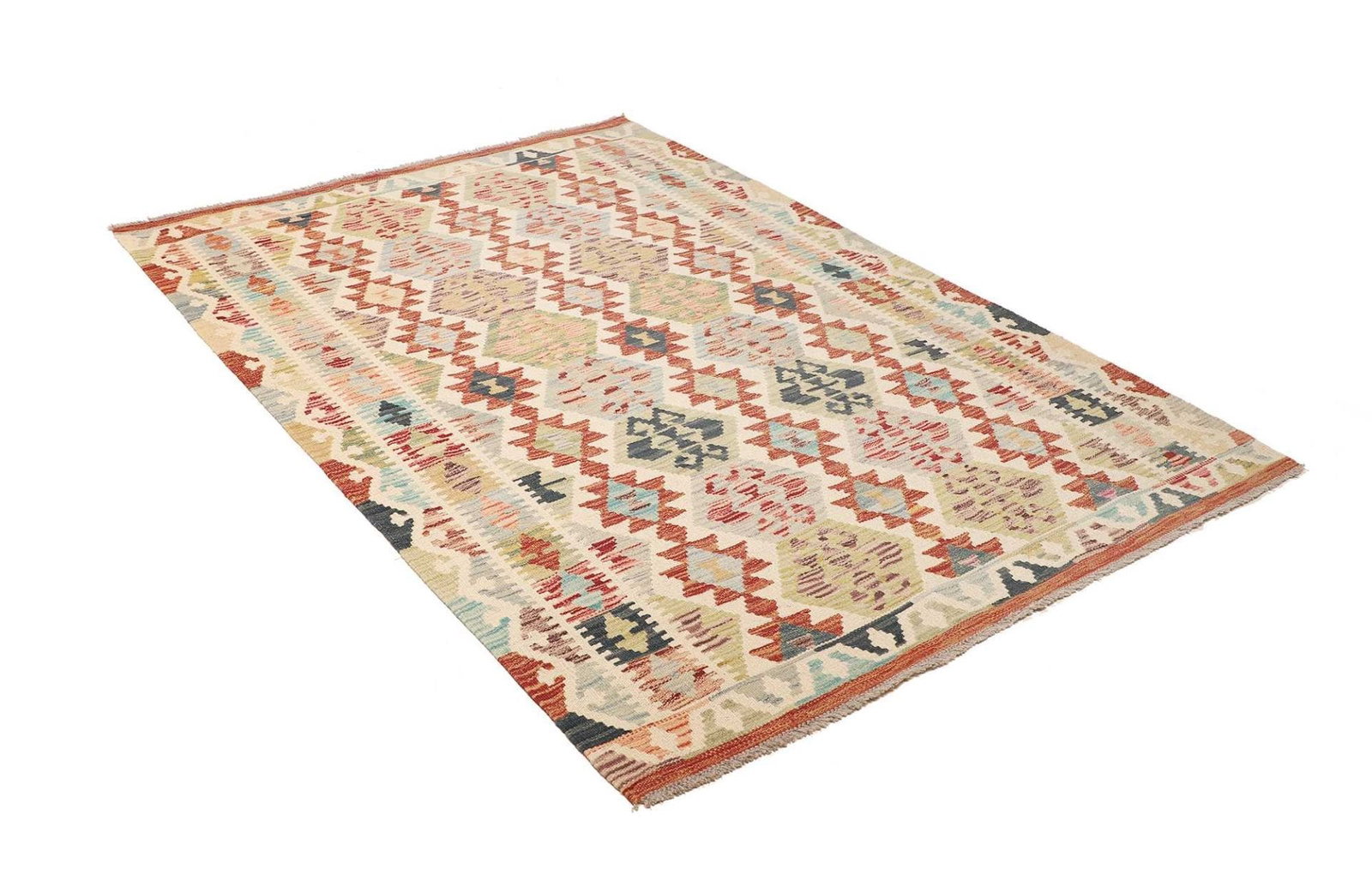 Kelim Teppich 133 x 185 cm aus Schurwolle, handgewebt, rustikal