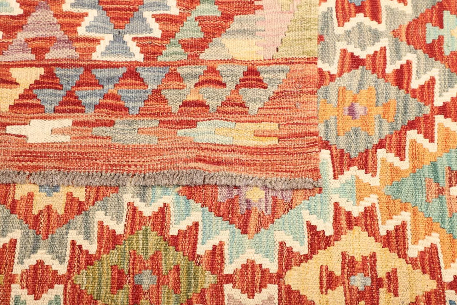 1446$ In den WarenkorbKelim 215 x 144 cm – Handgewebt mit identischem Muster auf Vorder- und Rückseite – Orientteppich