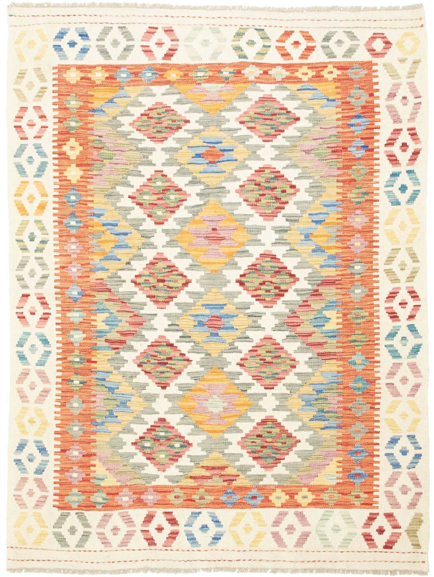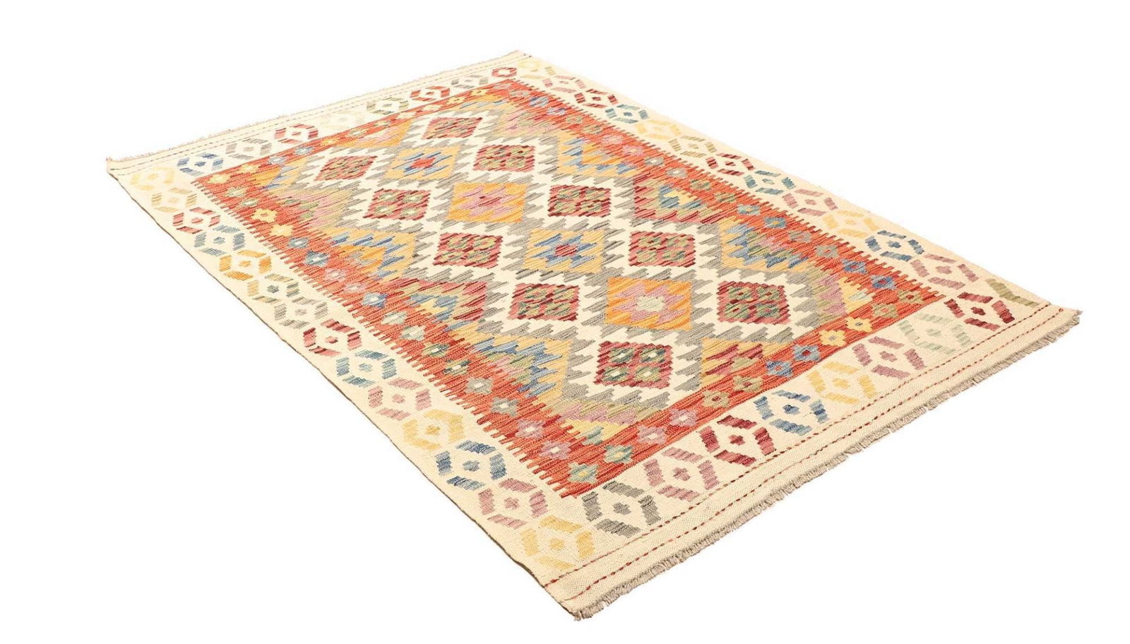 Kelim Teppich 136 x 180cm aus Schurwolle, handgewebt, rustikal