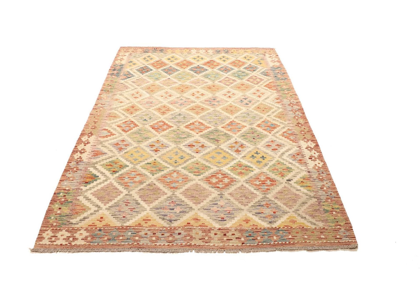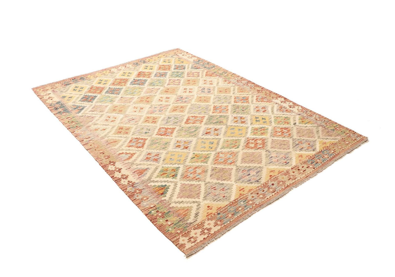 Kelim Teppich 140 x 188cm, rustikal, handgewebt, Schurwolle