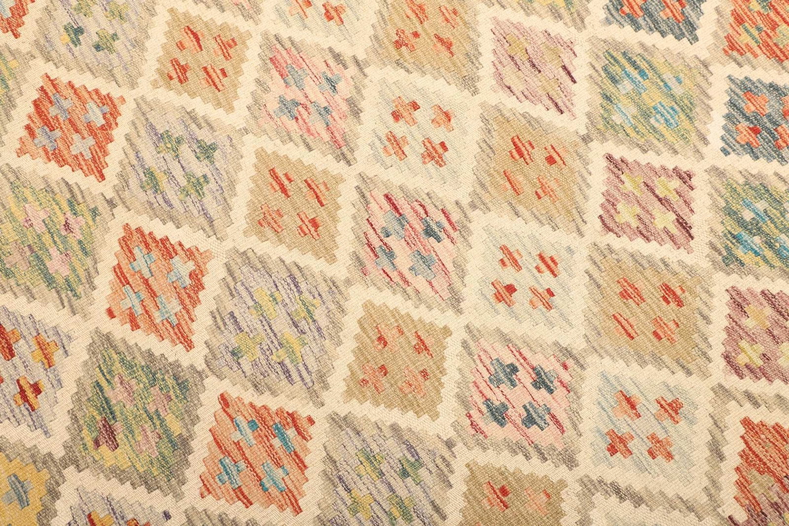 Die Kombination aus handgewebten Techniken und der Verwendung von Schurwolle macht diesen Kelim Teppich zu einer nachhaltigen und stilvollen Wahl für jeden Haushalt.