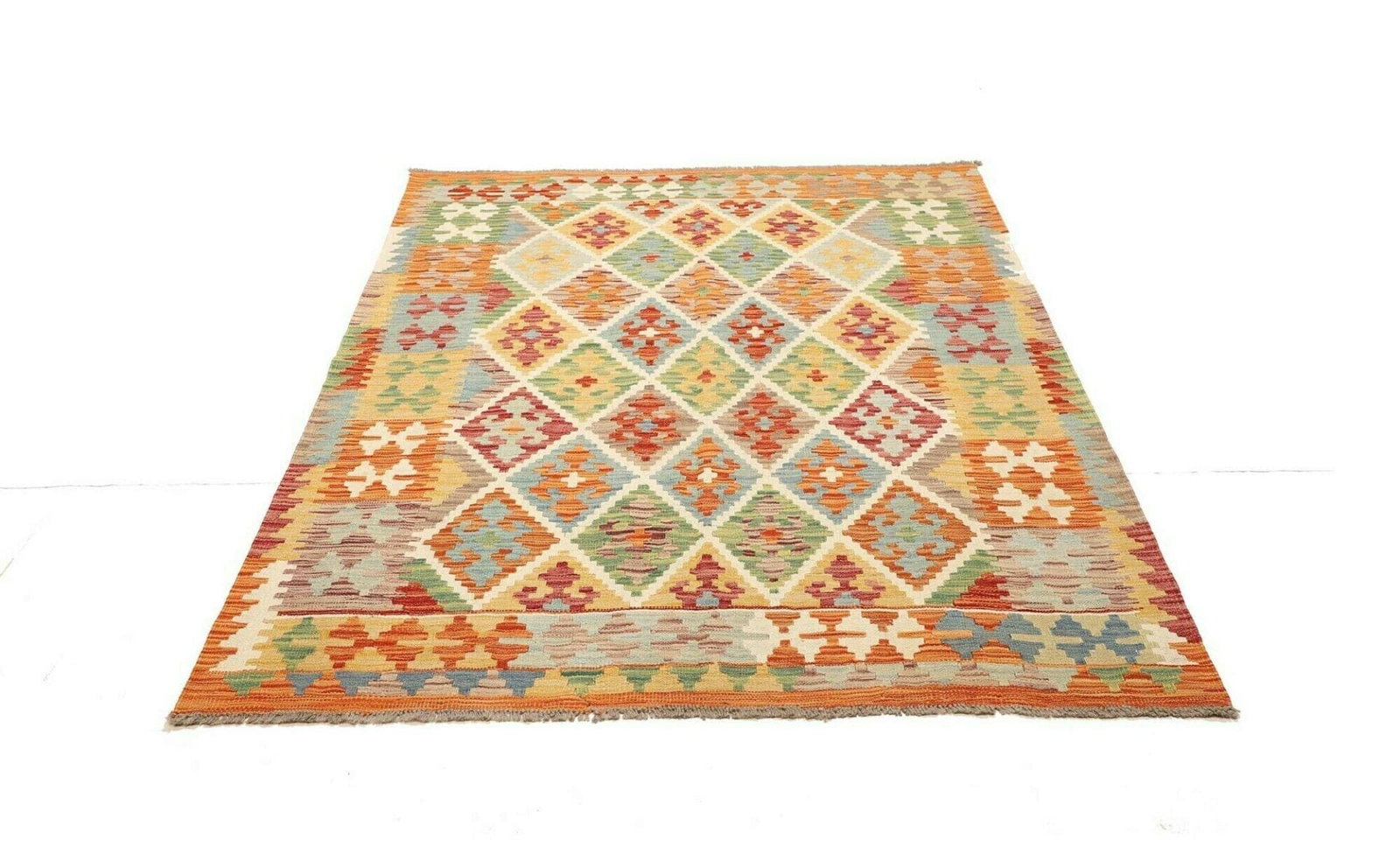 Kelim Teppich | Größe: 150 x 192 cm | Knotendichte: ca. 200.000 Knoten/m² | Flor: 100% Schurwolle | Kette: 100% Baumwolle | Herkunft: Pakistan | Höhe: ca. 5 mm | Handgewebte Qualität