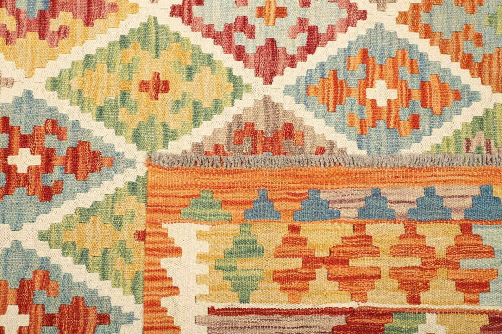 5478$ WeiterlesenKelim 215 x 144 cm – Handgewebt mit identischem Muster auf Vorder- und Rückseite – Orientteppich