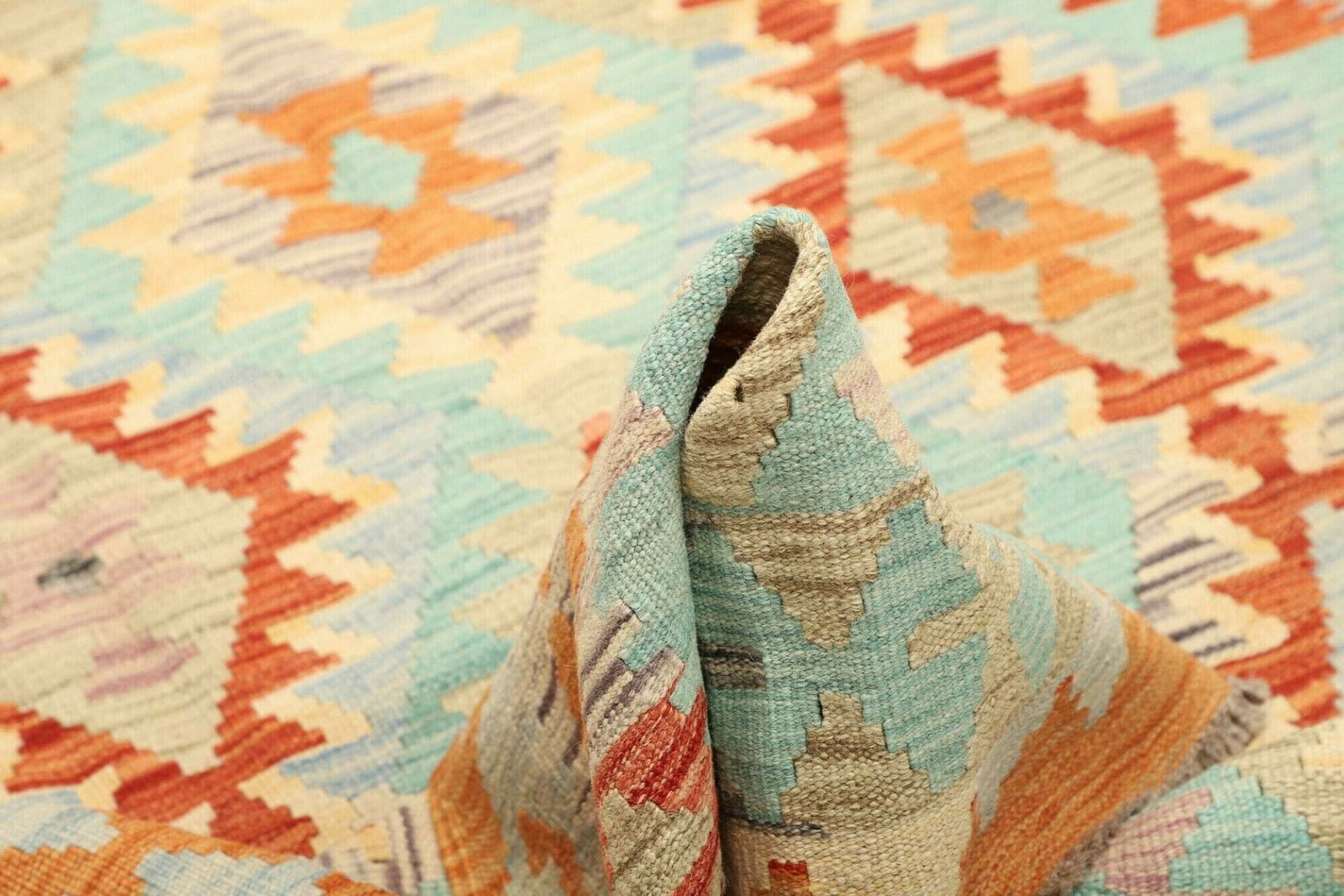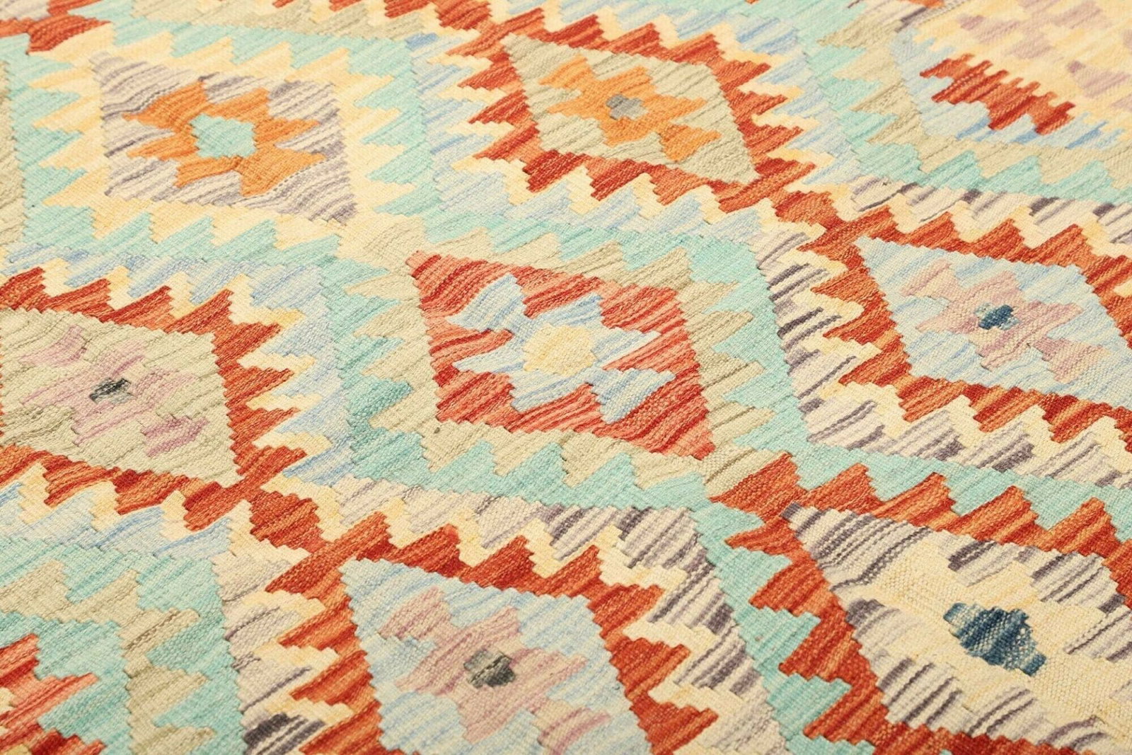 Ein herausragendes Merkmal des Kelim Teppichs ist seine Vielseitigkeit. Die leichten und flachen Strukturen ermöglichen es, diesen Teppich problemlos auf verschiedenen Untergründen zu verwenden. Zudem ist er einfach zu reinigen und überzeugt durch seine pflegeleichten Eigenschaften. Die handgewebte Technik sorgt dafür, dass jedes Stück ein Unikat ist, und die Knotendichte ist darauf ausgelegt, besten Komfort und eine lange Lebensdauer zu bieten. Dieser Teppich vereint Tradition und modernes Design und passt so perfekt in jede Wohnumgebung.