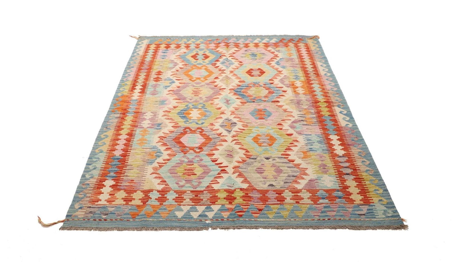 Kelim Teppich | Größe: 150 x 200 cm | Knotendichte: ca. 200.000 Knoten/m² | Flor: 100% Schurwolle | Kette: 100% Baumwolle | Herkunft: Pakistan | Handgewebte Qualität | Höhe: ca. 5 mm