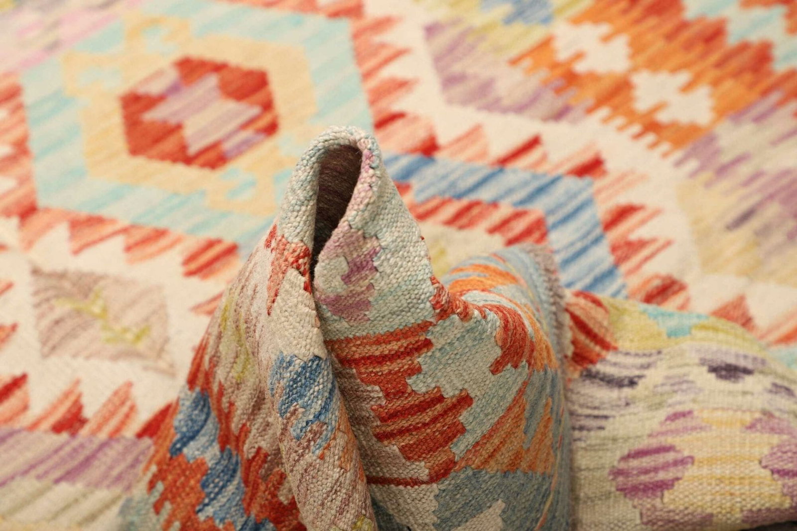 Zusammenfassend lässt sich sagen, dass der Kelim Teppich aus Schurwolle eine perfekte Mischung aus Tradition, Handwerkskunst und praktischem Nutzen bietet, wodurch er jedem Raum Charakter und Wärme verleiht.
