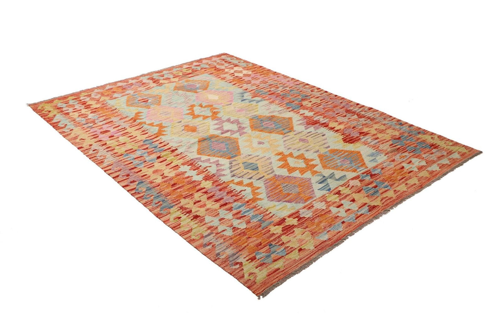 Kelim Teppich aus Schurwolle, handgewebt, rustikal