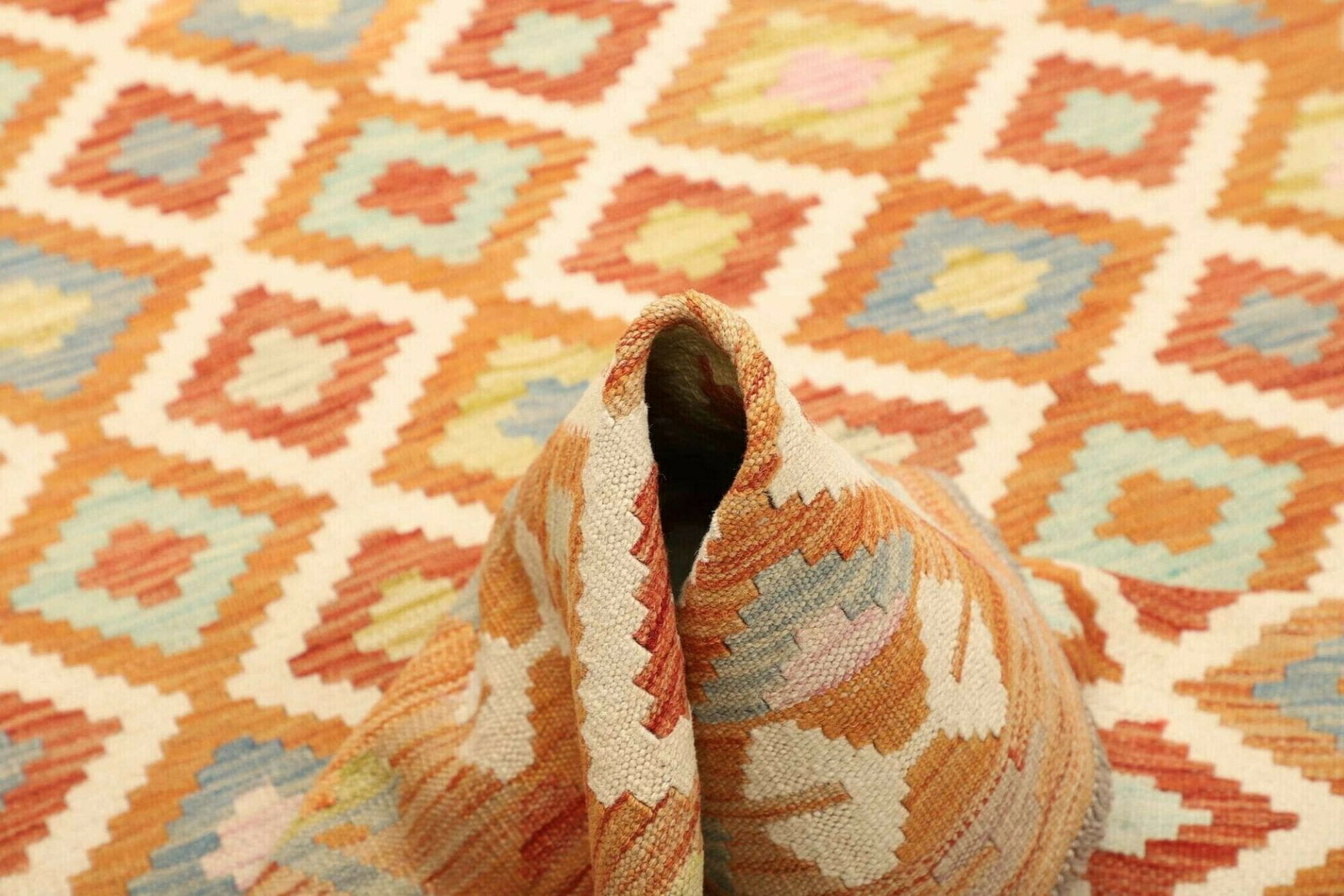 Ein weiterer Vorteil einer handgewebten Kelim ist die Vielseitigkeit, die sie in die Innendekoration bringt. Egal, ob in einem modernen Zuhause oder in einem traditionelleren Ambiente, dieser Teppich fügt sich harmonisch ein und ergänzt diverse Einrichtungsstile. Zudem ist die Pflege eines Kelim Teppichs relativ einfach. Regelmäßiges Staubsaugen und gelegentliches Ausklopfen genügen in der Regel, um die Schönheit des Teppichs zu bewahren.