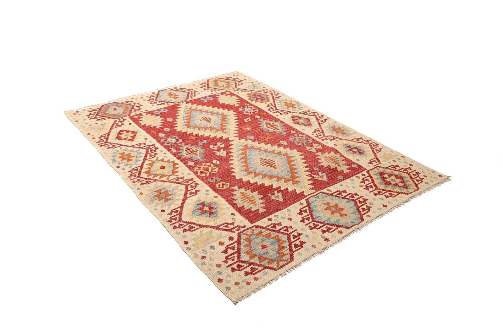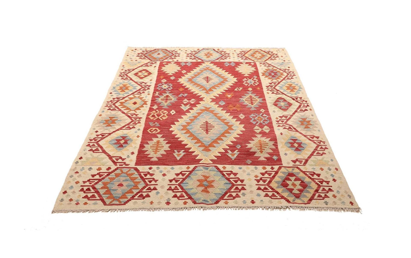 Kelim Teppich 151 x 203cm, handgewebt, rustikales Flair, Wolle