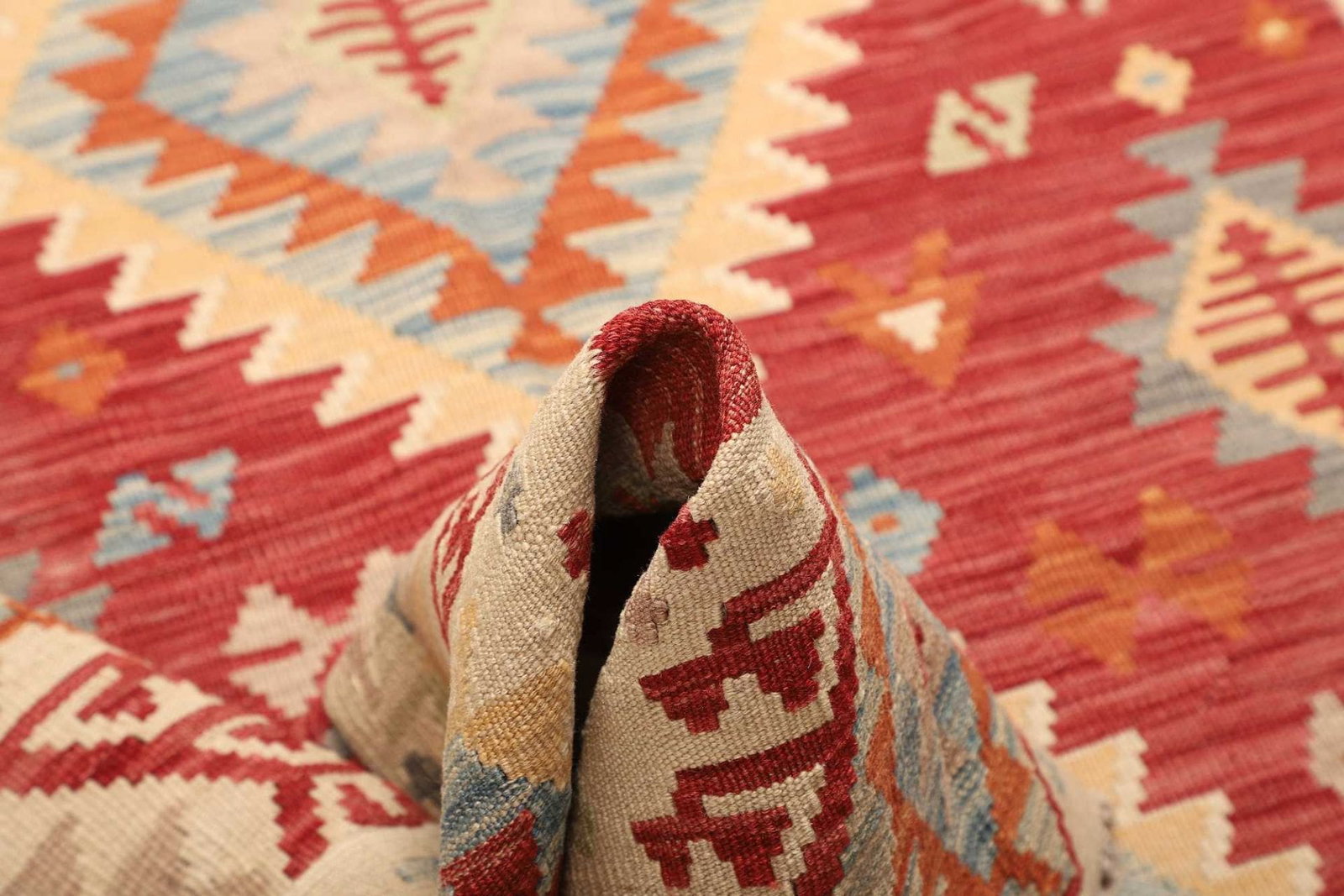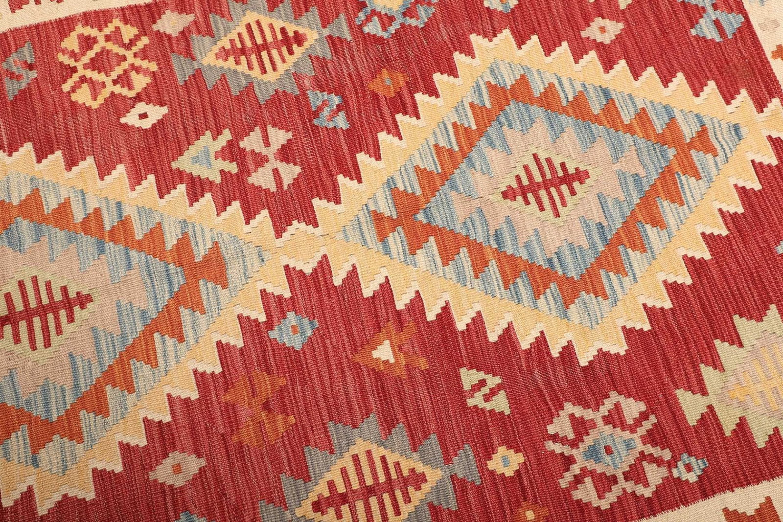 Dieser handgewebte Kelim Teppich passt hervorragend in Wohn- und Schlafzimmer, aber auch in Flure oder Essräume. Dank seiner Robustheit ist er ideal für stark frequentierte Bereiche.