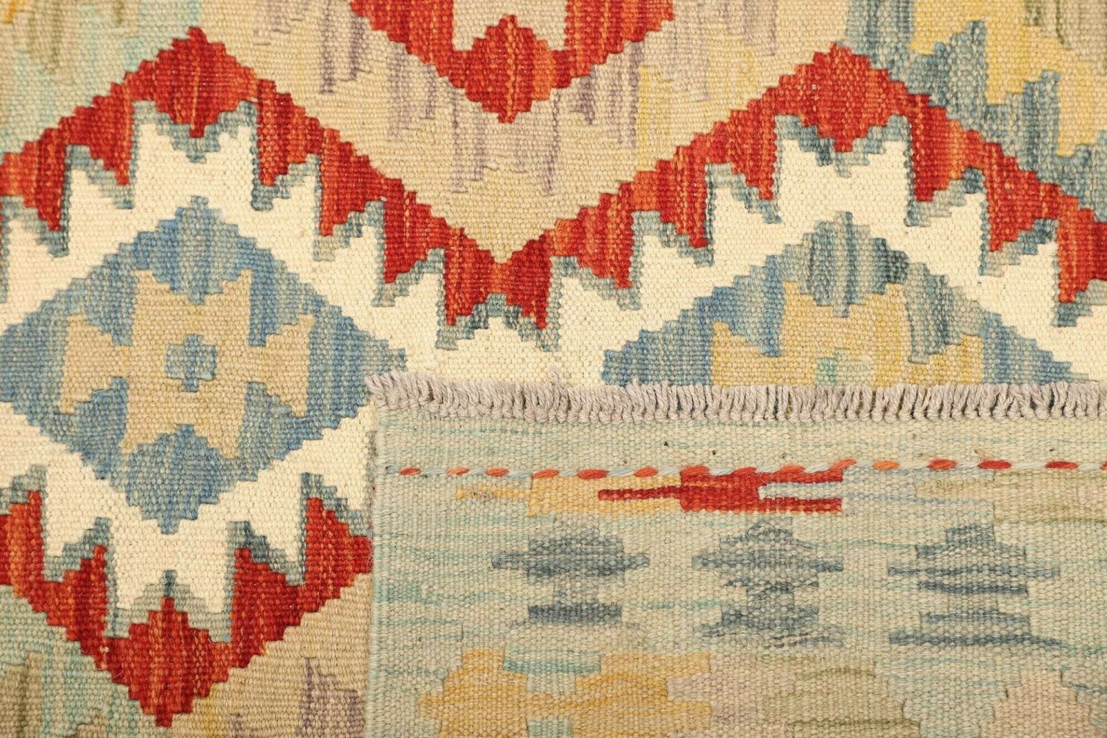 482$ WeiterlesenKelim 215 x 144 cm – Handgewebt mit identischem Muster auf Vorder- und Rückseite – Orientteppich