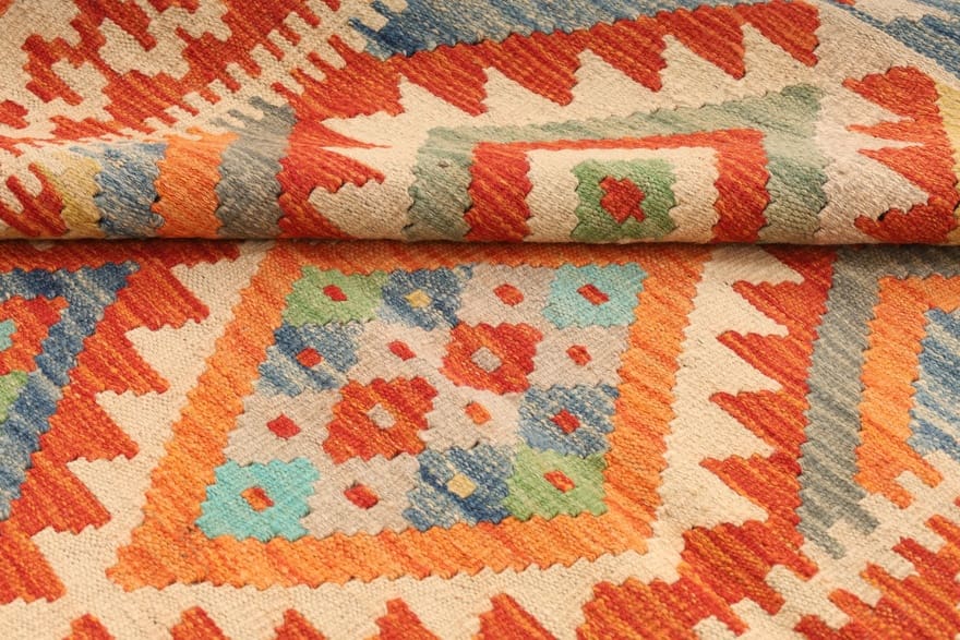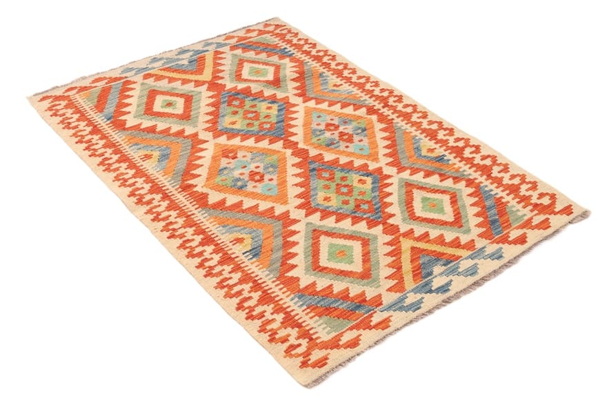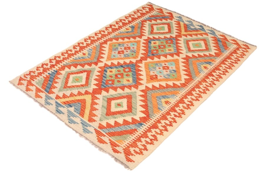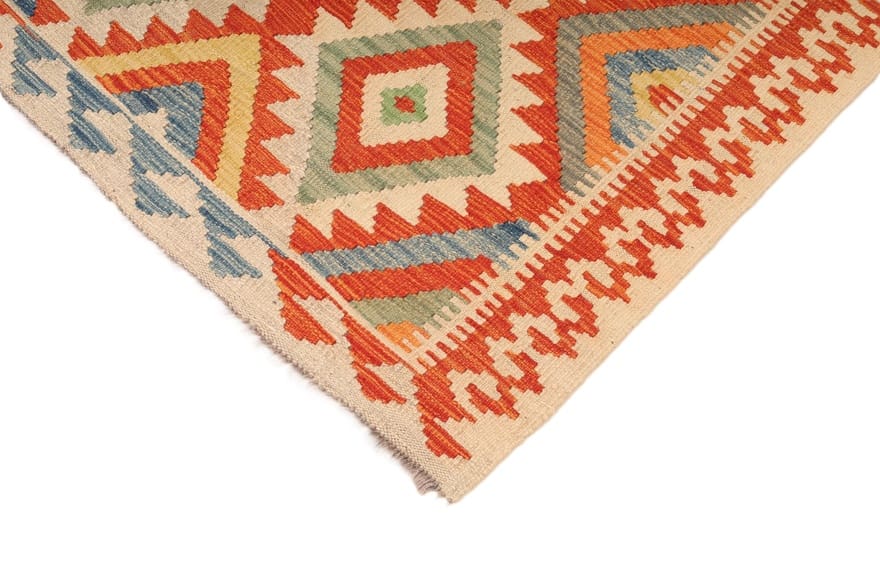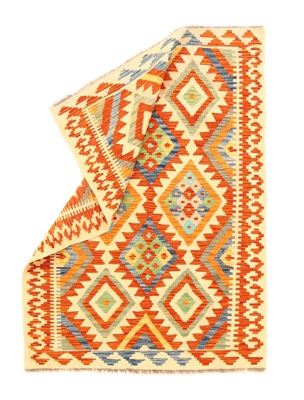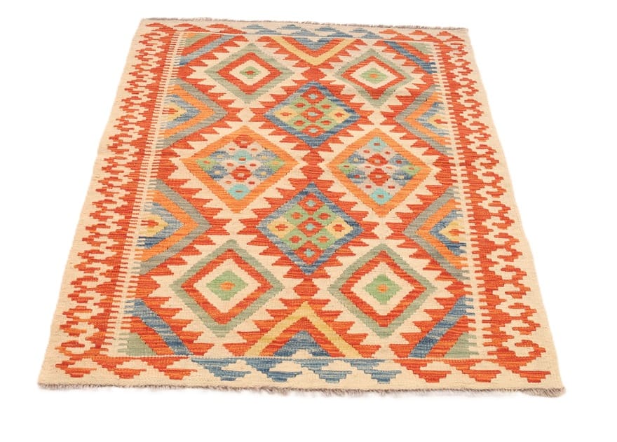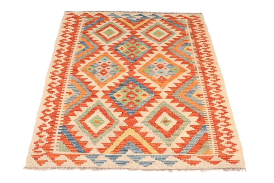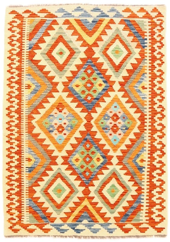 Handgewebter Kelim-Teppich | Knotendichte: Flachgewebt | Material: Hochwertige Wolle | Größe: 152×108 cm | Farbe: Multifarbe | Zustand: Neu | Ursprung: Afghanistan | Geometrisches Muster | Dicke: ca. 4 mm | Gewicht: ca. 6 kg