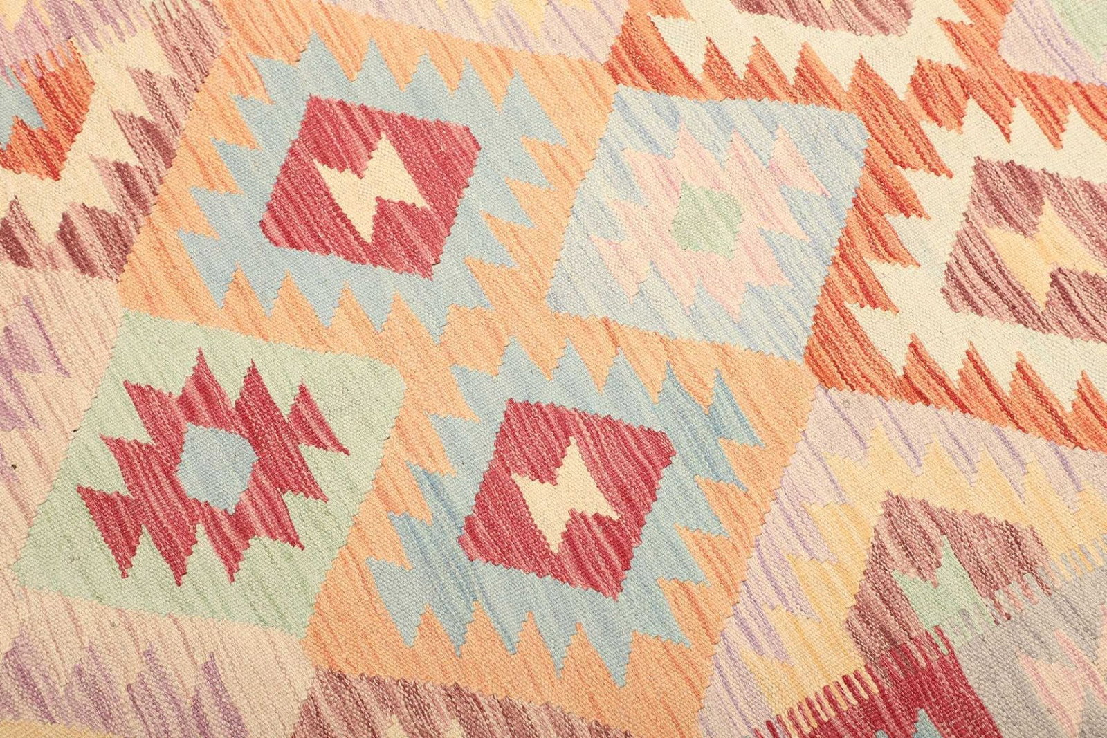 Dieser Kelim Teppich wird aus 100% Schurwolle gefertigt, was ihm eine hervorragende Strapazierfähigkeit und einen hohen Tragekomfort verleiht. Schurwolle ist für ihre natürlichen Eigenschaften bekannt: Sie ist schmutzabweisend, langlebig und pflegeleicht. Der Teppich wurde mit einer traditionellen handgewebten Technik produziert, was bedeutet, dass jeder Teppich ein Unikat ist und mit Liebe zum Detail hergestellt wurde. Durch die handwerkliche Fertigung entsteht eine besondere Knotendichte, die sowohl die Qualität als auch die Widerstandsfähigkeit des Teppichs unterstreicht.