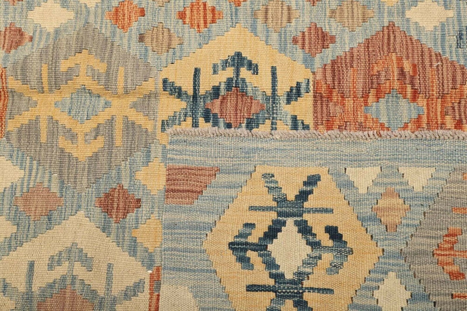 Kelim 215 x 144 cm – Handgewebt mit identischem Muster auf Vorder- und Rückseite – Orientteppich