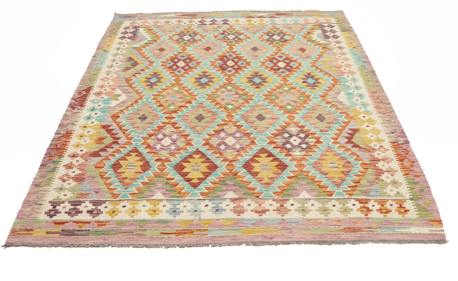 Kelim Teppich 154 x 192 cm, rustikales Design, handgewebt