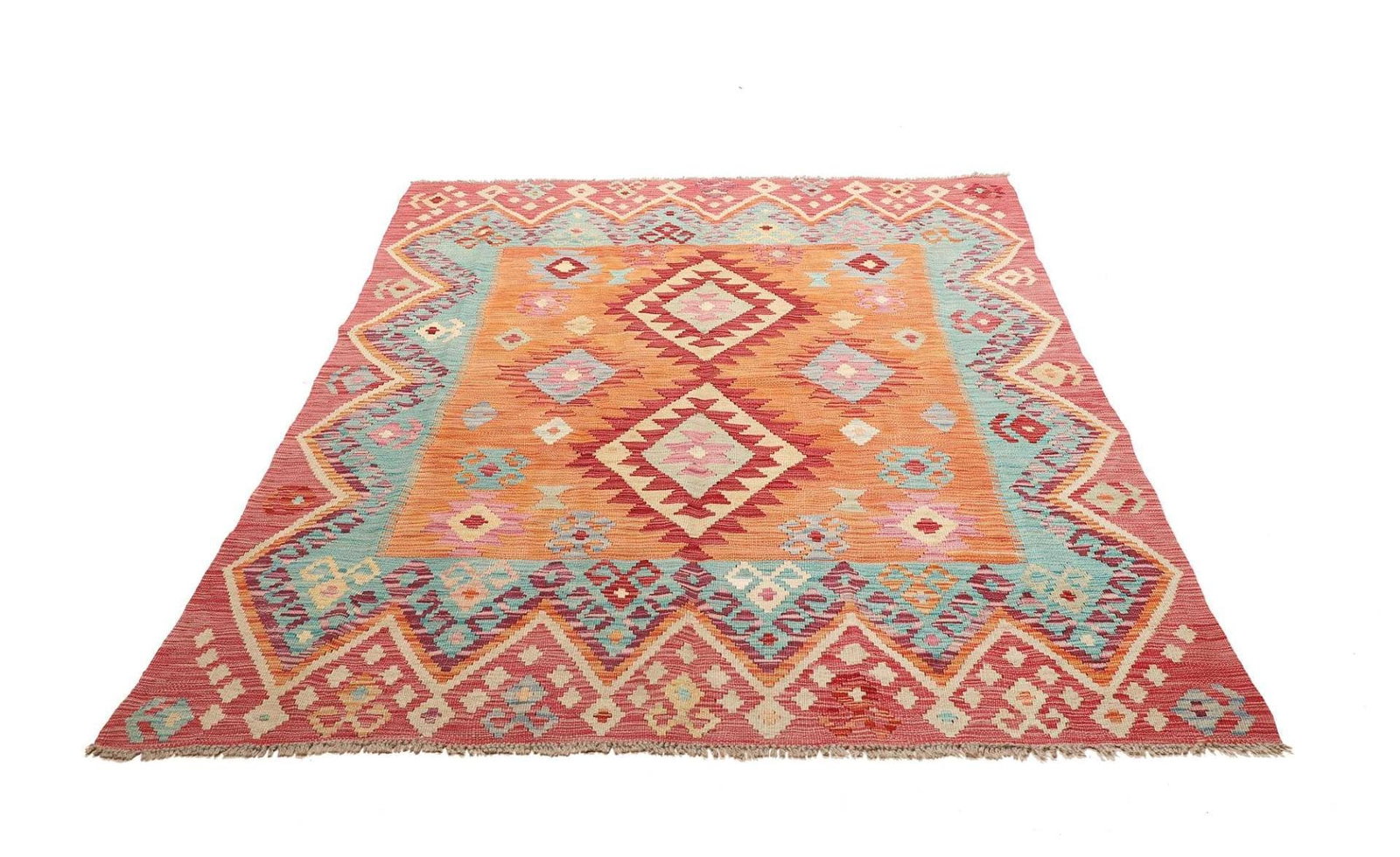 Kelim Teppich | Knotendichte: ca. 200.000 Knoten/m² | Material: 100% Schurwolle (Flor), 100% Baumwolle (Kette) | Größe: 154 x 196 cm | Handgewebte Qualität aus Pakistan | Höhe: ca. 5 mm | Rustikales Flair, ideal für moderne Wohnräume