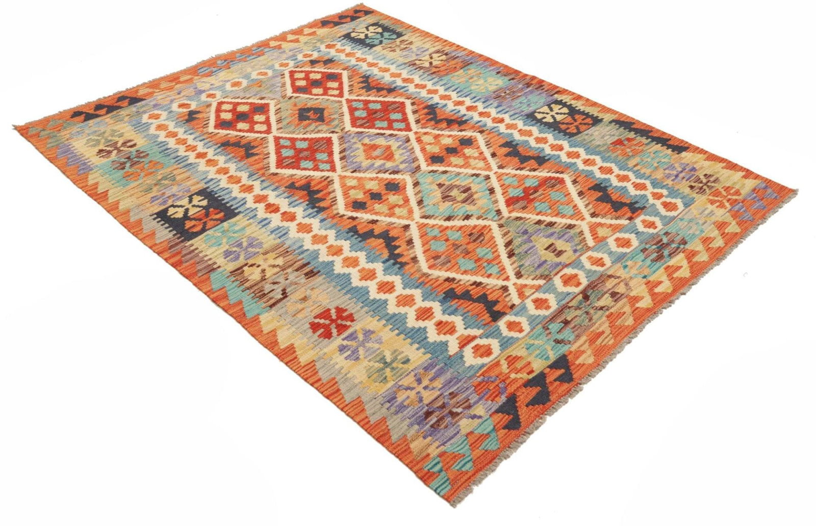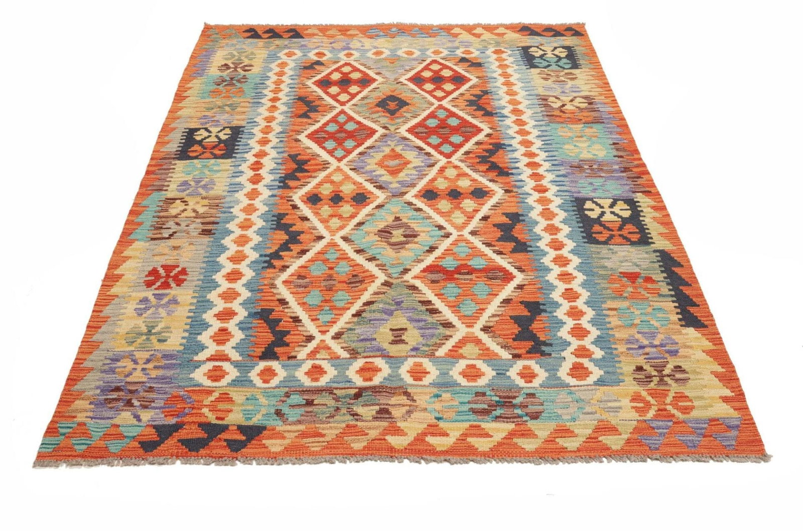 Kelim Teppich | Knotendichte: ca. 200.000 Knoten/m² | Material: 100% Schurwolle (Flor) und 100% Baumwolle (Kette) | Größe: 154 x 198 cm | Handgewebte Qualität aus Pakistan | Höhe: ca. 5 mm | Perfekt für moderne und rustikale Einrichtungsstile