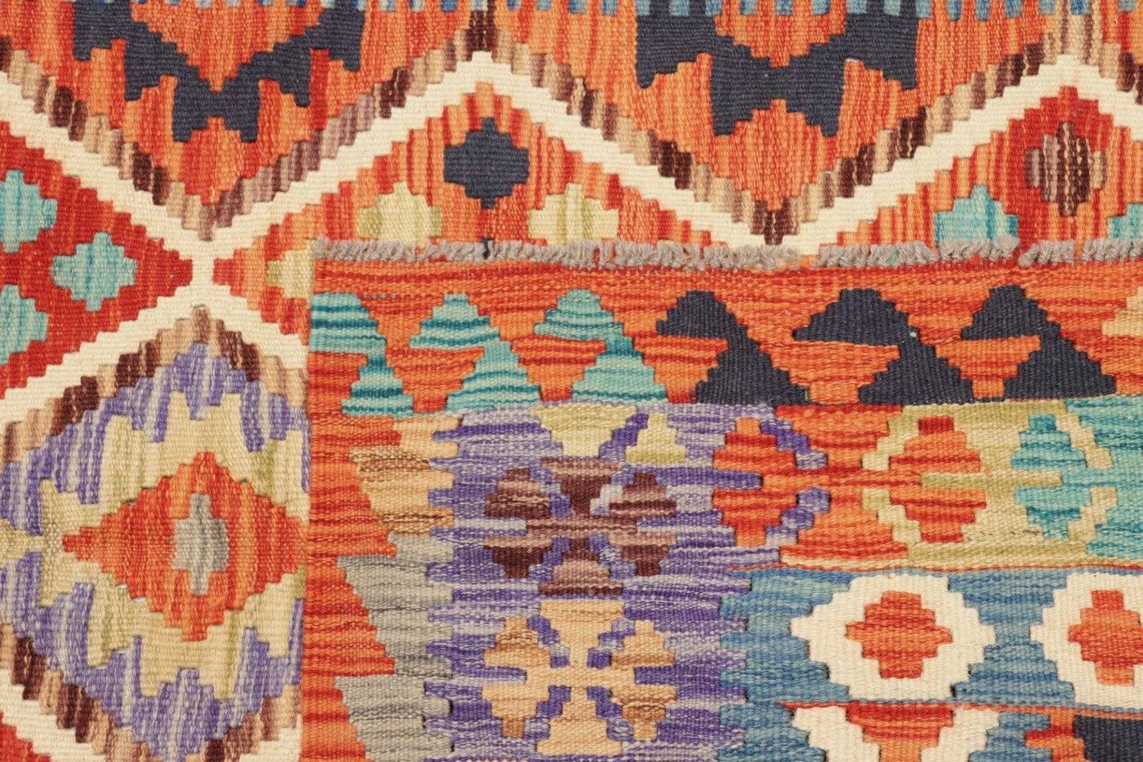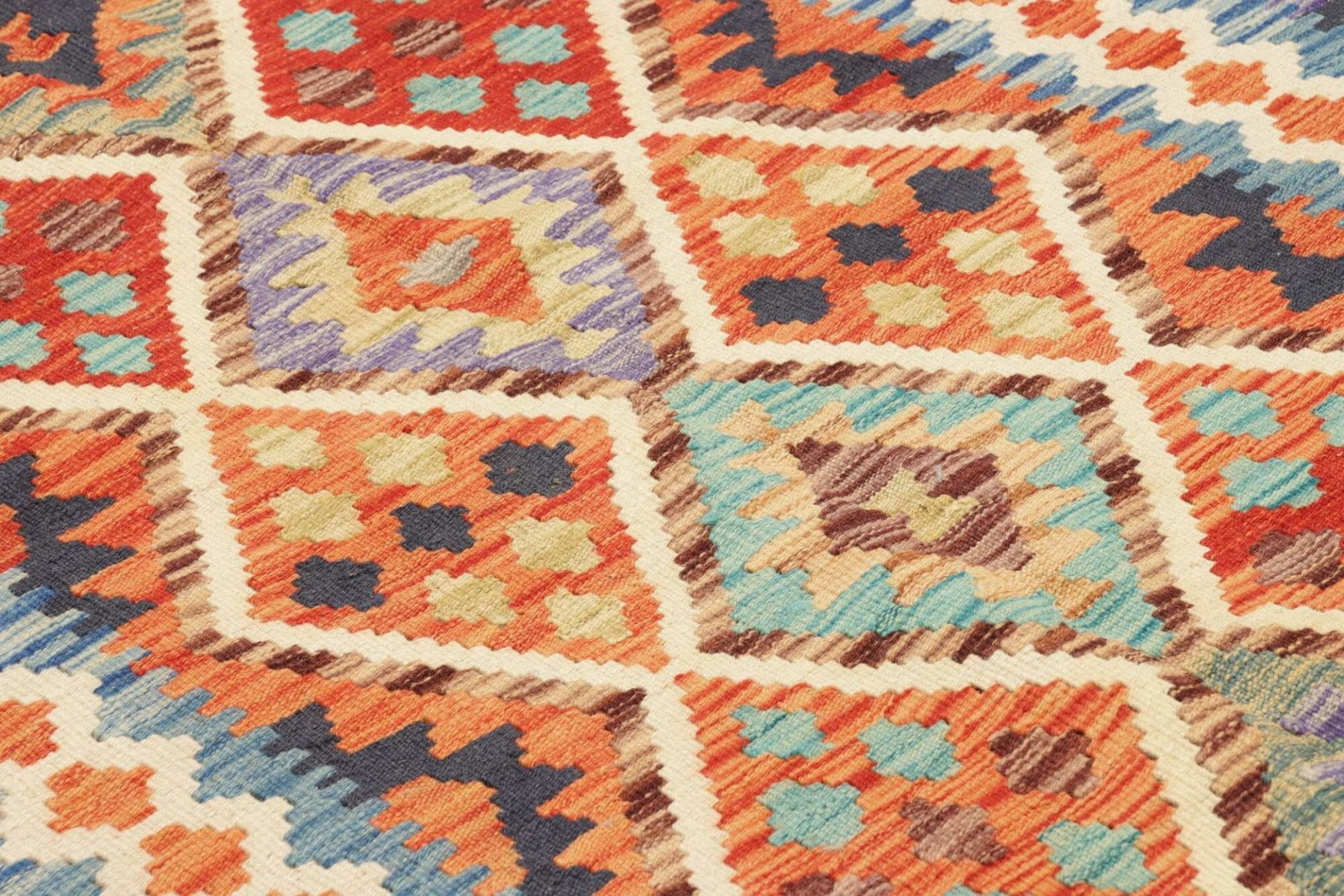 Kelim Teppich, handgewebt, rustikales Flair, Wolle