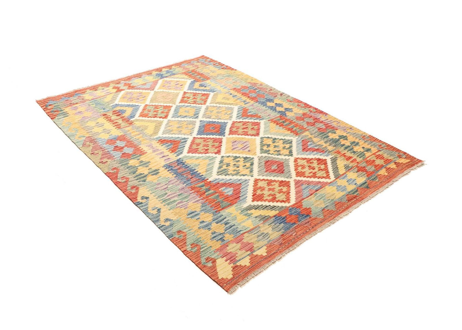 971$ In den WarenkorbKelim 215 x 144 cm – Handgewebt mit identischem Muster auf Vorder- und Rückseite – Orientteppich