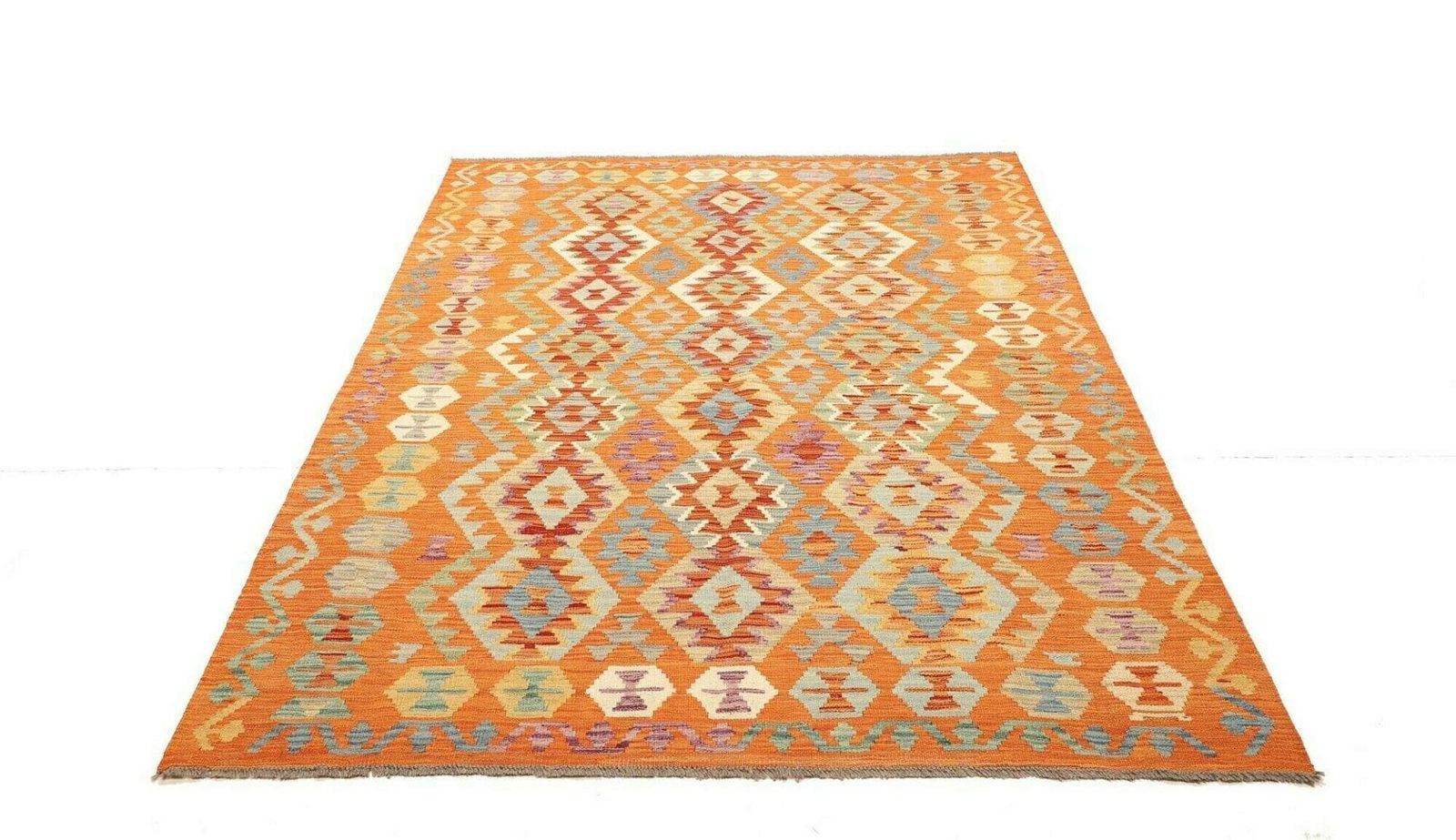 519$Ursprünglicher Preis war: 519$360$Aktueller Preis ist: 360$Kelim Teppich | Größe: 154 x 203 cm | Knotendichte: ca. 200.000 Knoten/m² | Flor: 100% Schurwolle | Kette: 100% Baumwolle | Zustand: Handgewebte Qualität | Herkunft: Pakistan | Höhe: ca. 5 mm