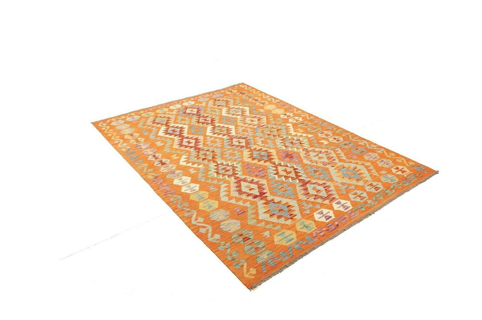 971$ In den WarenkorbKelim 206 x 145 cm – Gewebt mit identischen Mustern auf Vorder- und Rückseite, ideal als Wandbehang, handgewebt, Orientteppich
