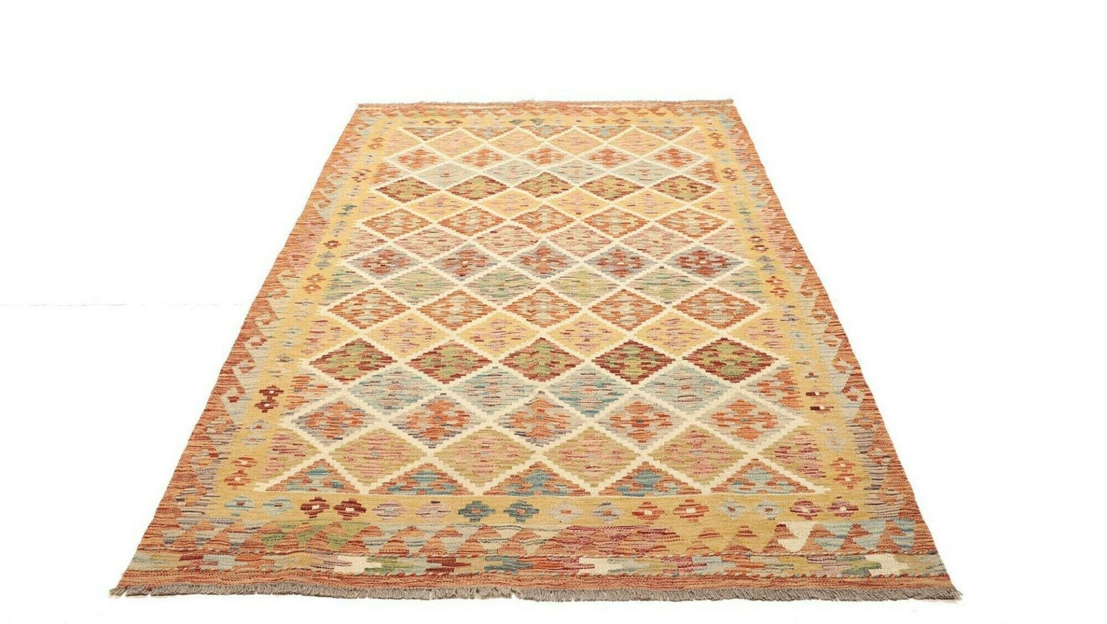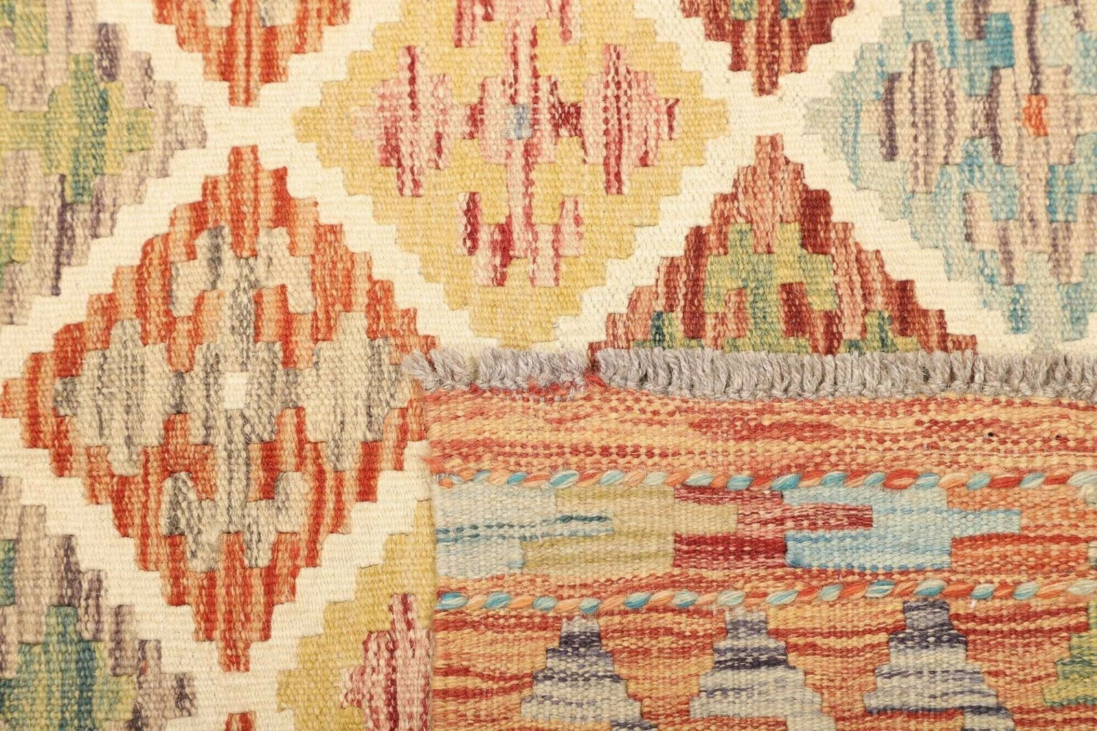 971$ In den WarenkorbKelim 215 x 144 cm – Handgewebt mit identischem Muster auf Vorder- und Rückseite – Orientteppich