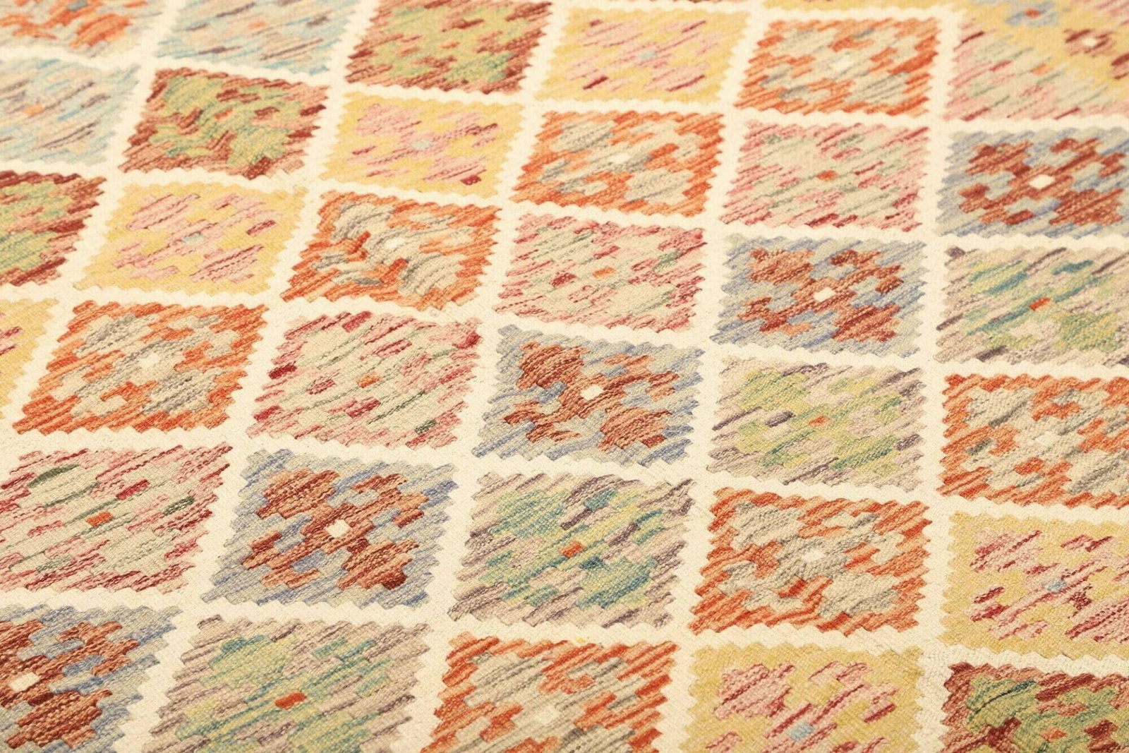 Kelim Teppich aus Schurwolle, handgewebt, rustikales Flair