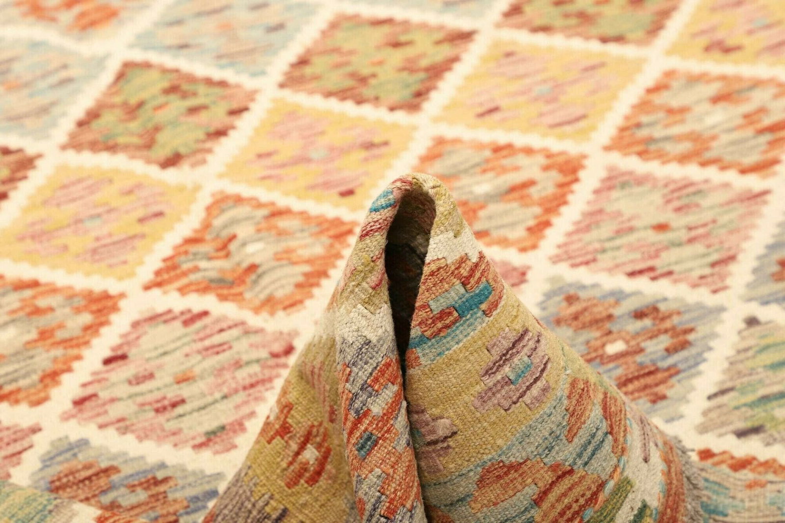 Der Kelim Teppich ist nicht nur funktional, sondern auch ein ästhetisches Meisterwerk. Die Muster sind oft geometrisch und farbenfroh, was dem Teppich einen dynamischen und lebendigen Look verleiht. Diese Designs erzählen Geschichten und symbolisieren oft kulturelle Aspekte des Lebens in der jeweiligen Region. Jedes Muster ist ein Ausdruck von Kunst und Tradition, die in jedem einzelnen Stück zum Ausdruck kommt.