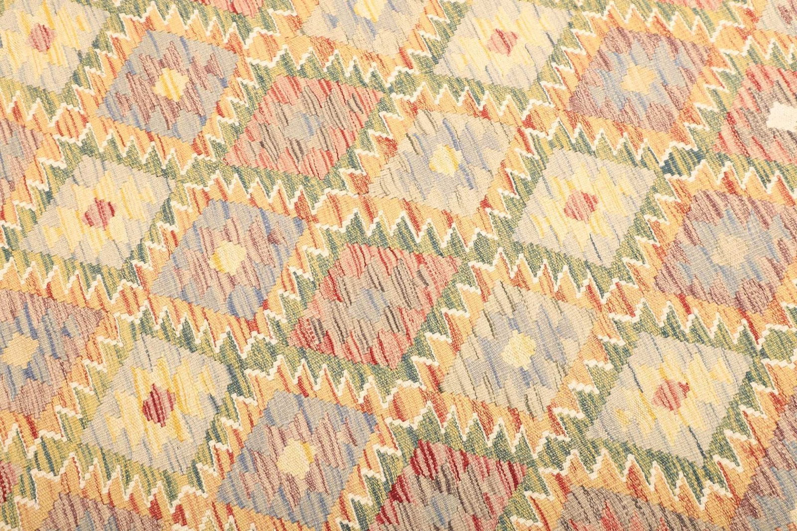Die genaue Herkunft des Kelim Teppichs kann variieren, da viele in verschiedenen Regionen des Vorderen Orients handgewebt werden. Jede Region hat ihre eigene Tradition und Stilrichtung, was den Kelim Teppichen eine besondere Vielfalt und Einzigartigkeit verleiht.