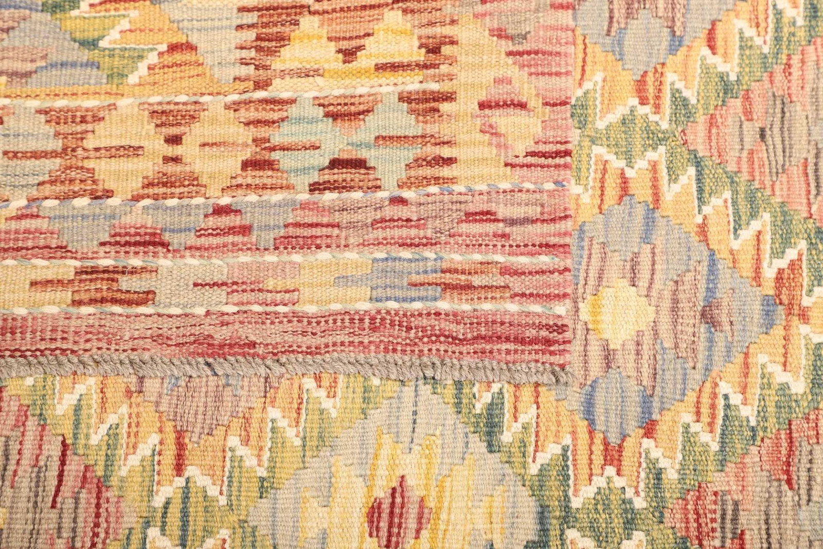 5478$ WeiterlesenKelim 216 x 128 cm – Handgewebt mit doppeltem Muster auf Vorder- und Rückseite – Traditioneller Wandschmuck – Handgeknüpft – Orientteppich