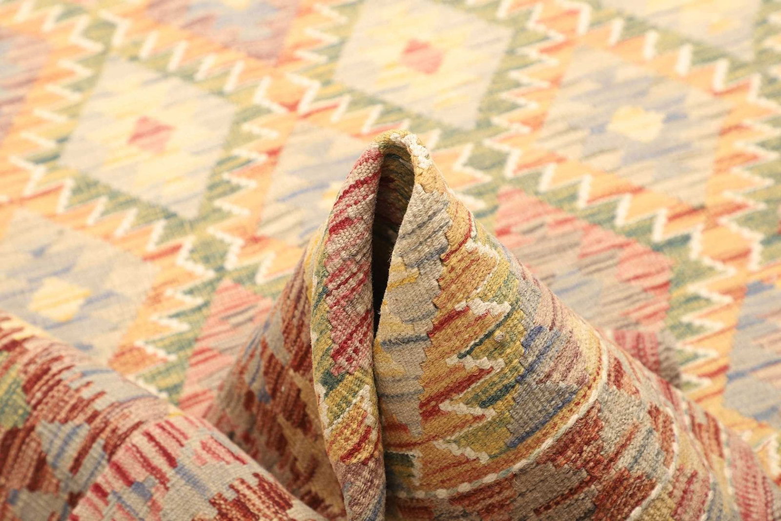 Unser Kelim Teppich besteht aus 100 % Wolle, einem Naturmaterial, das für seine Langlebigkeit und Robustheit bekannt ist. Wolle ist nicht nur warm und gemütlich, sondern auch pflegeleicht und schmutzabweisend. Die handgewebte Technik verleiht dem Teppich eine einzigartige Struktur und einen bezaubernden Charakter. Durch die traditionelle Herstellungsweise bleiben die einzigartigen Eigenschaften der Wollfaser erhalten, was für ein angenehmes und gesundes Raumklima sorgt.