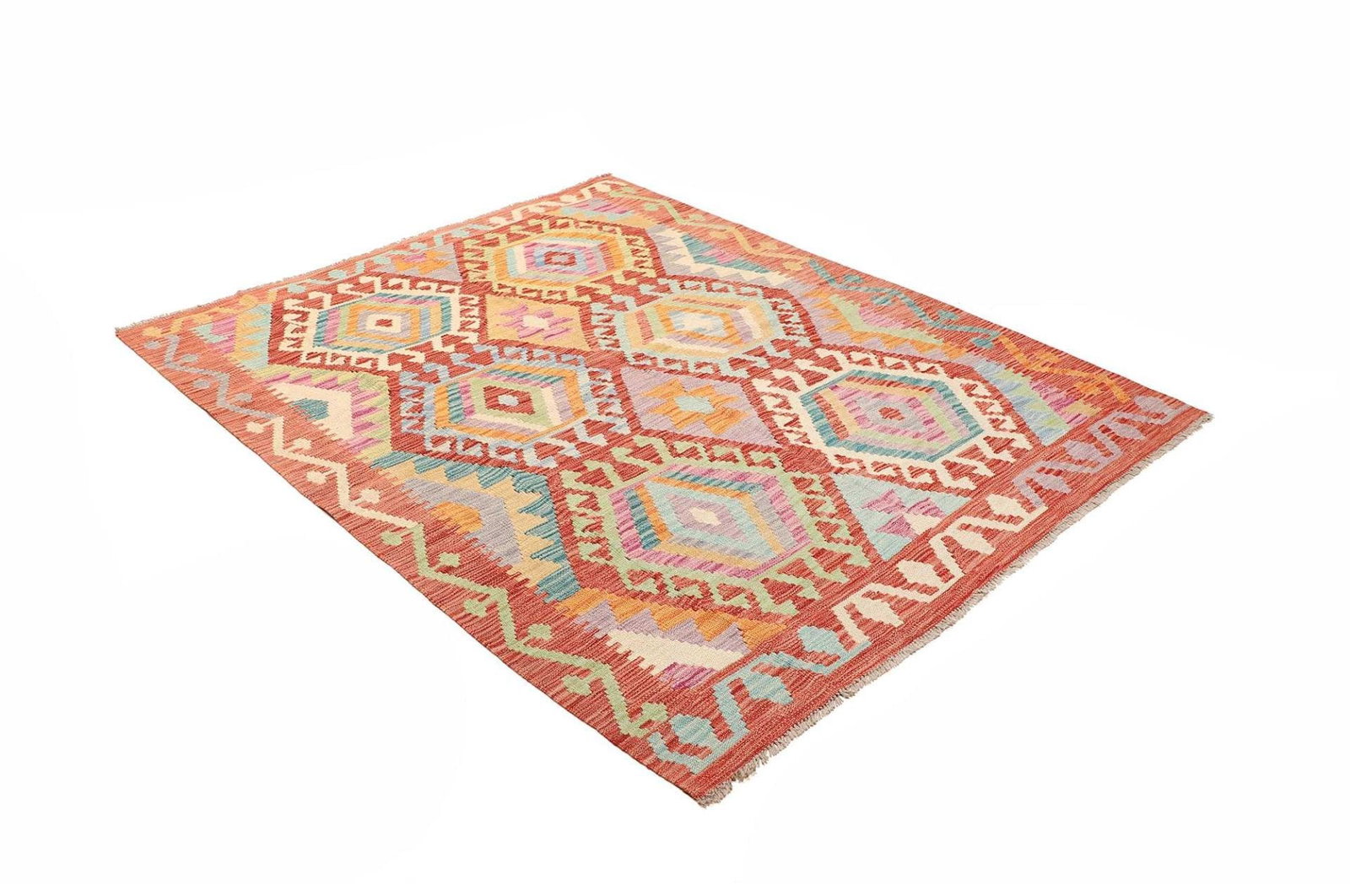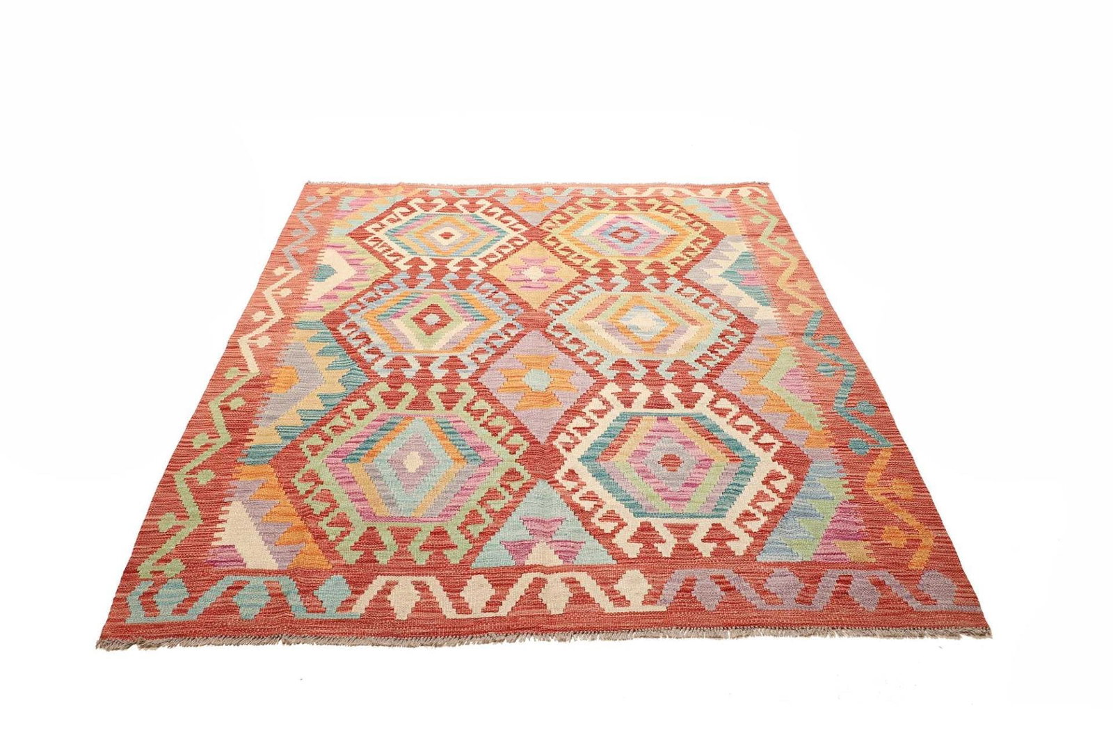 Kelim Teppich 156 x 192cm, handgewebt, rustikales Design, Wolle