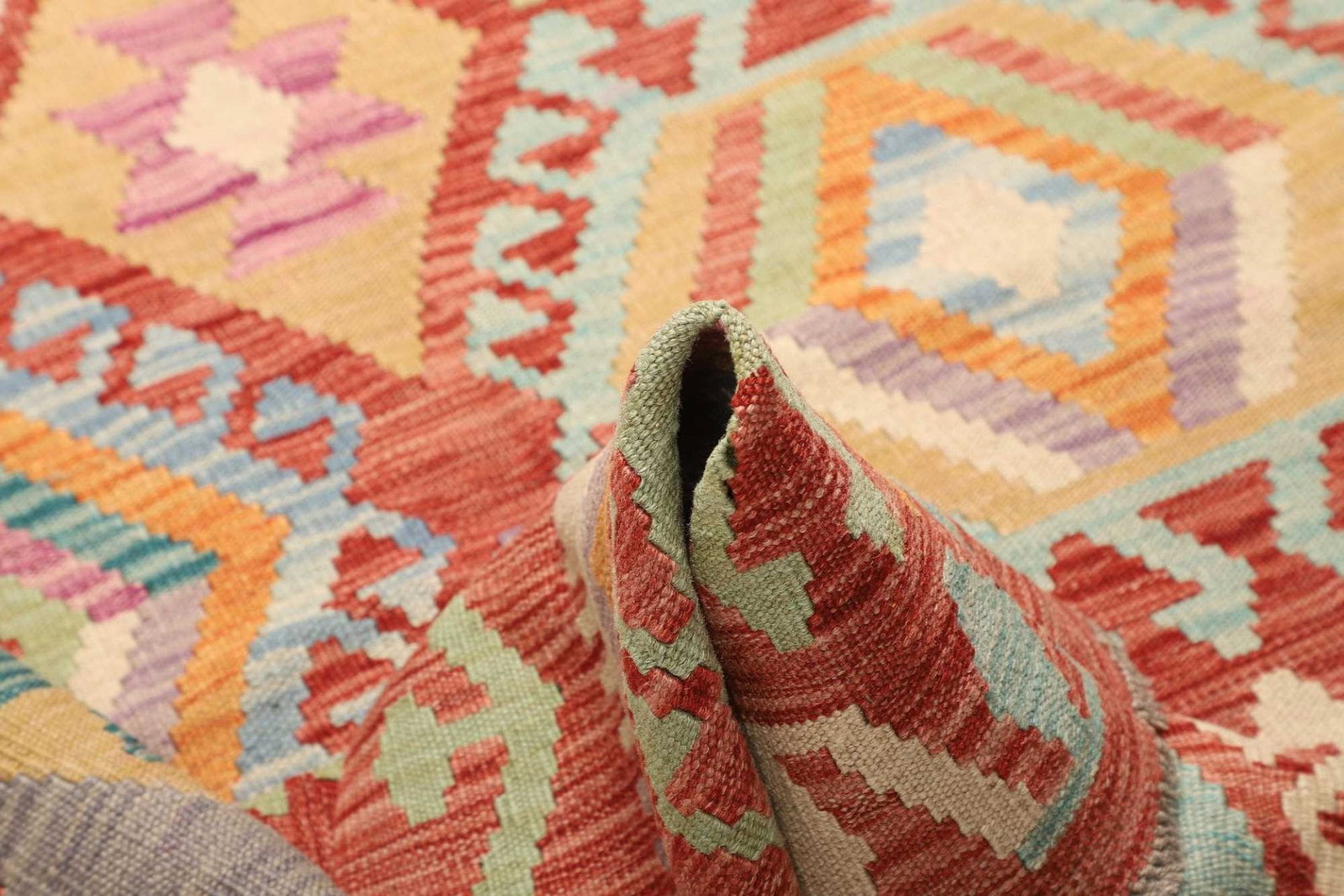 Ein weiterer Vorteil des Kelim Teppichs ist seine Pflegeleichtigkeit. Der Teppich kann leicht gereinigt werden, und durch seine strapazierfähige Wolle bleibt er auch bei intensiver Nutzung schön. Aufgrund der handgewebten Technik ist jeder Teppich einzigartig, was bedeutet, dass ihr Teppich eine Geschichte erzählt und einzigartig in seinem Charakter ist.