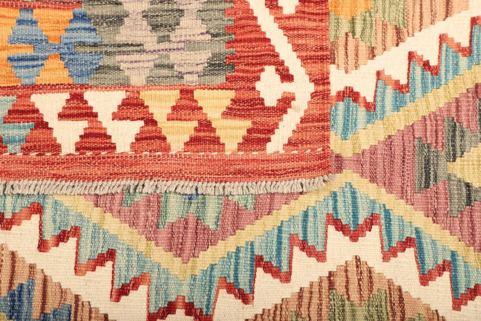 1446$ In den WarenkorbKelim 215 x 144 cm – Handgewebt mit identischem Muster auf Vorder- und Rückseite – Orientteppich
