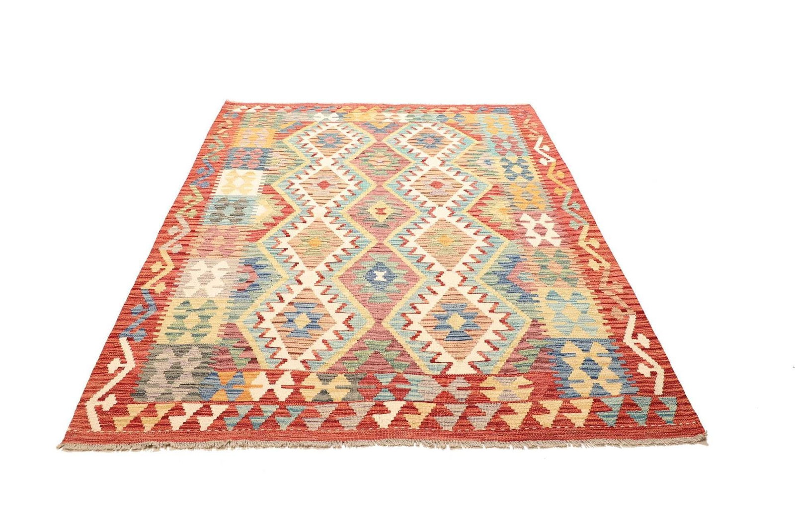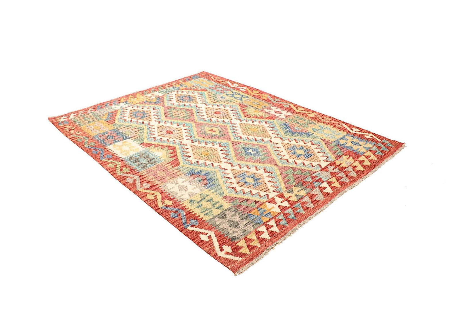 Kelim Teppich 156 x 202cm aus Schurwolle, handgewebt, rustikal