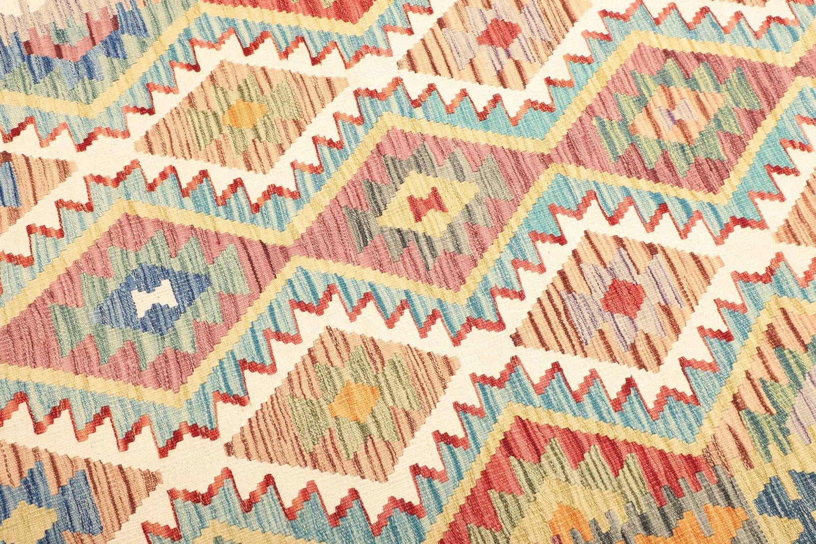 Kelim Teppich aus Schurwolle, handgewebt, rustikal