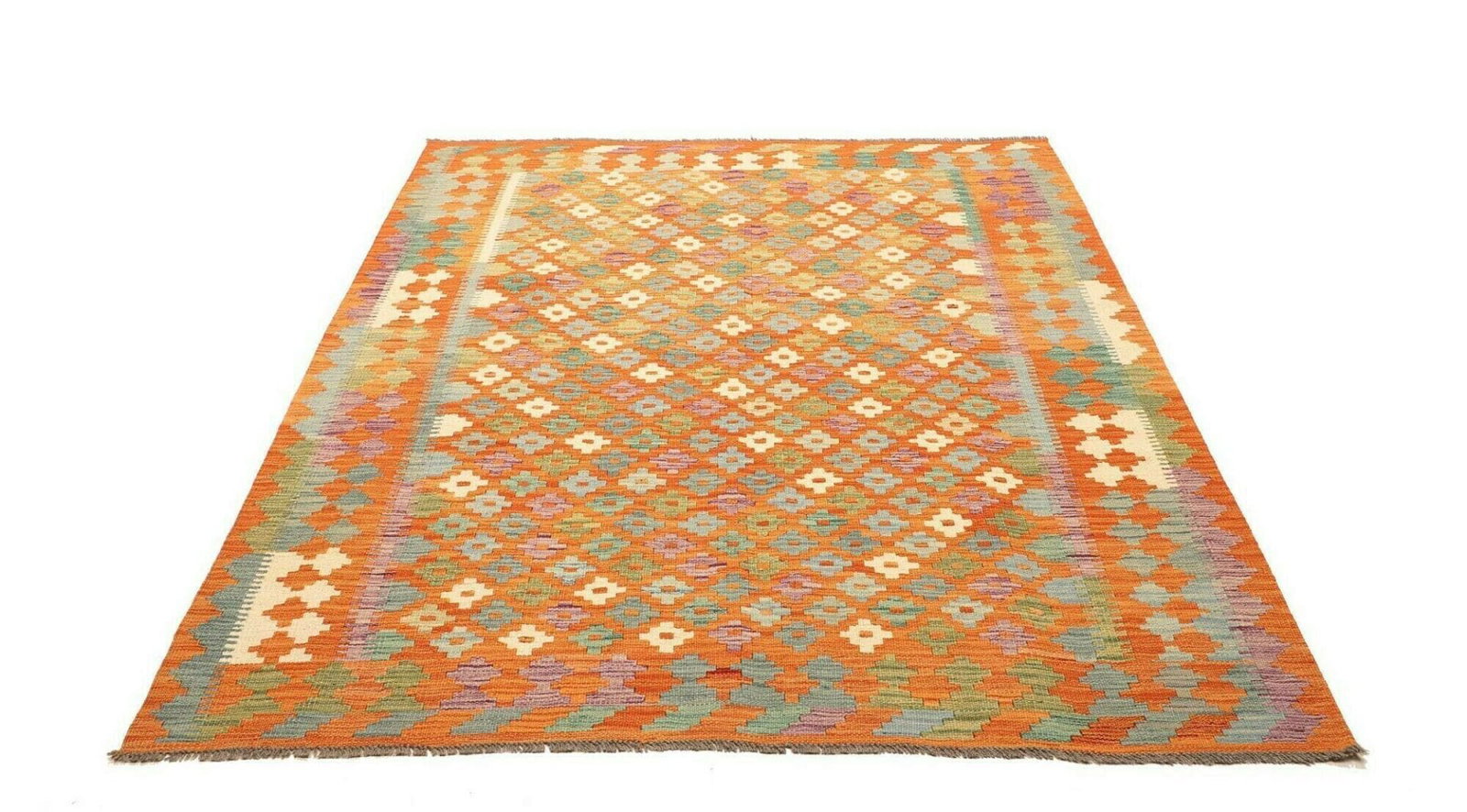 Kelim Teppich | Größe: 157 x 192 cm | Knotendichte: ca. 200.000 Knoten/m² | Flor: 100% Schurwolle | Kette: 100% Baumwolle | Herkunft: Pakistan | Handgewebte Qualität | Angenehme Haptik und schallabsorbierend