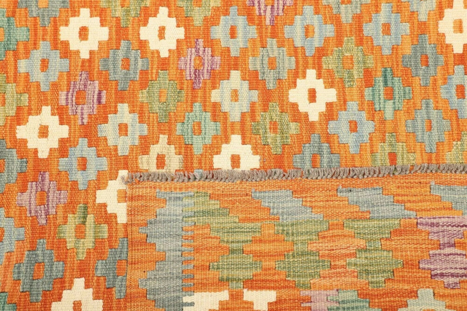 Der Kelim Teppich besteht aus hochwertiger Schurwolle, die für ihre besondere Strapazierfähigkeit und Langlebigkeit bekannt ist. Schurwolle ist nicht nur weich und angenehm zu berühren, sondern auch schmutzabweisend und feuchtigkeitsregulierend. Dies macht sie zu einem idealen Material für Teppiche, die täglich beansprucht werden. Die handgewebte Technik sorgt dafür, dass jeder Teppich ein Unikat ist – mit subtilen Unterschieden, die den Charakter des Produkts unterstreichen.
