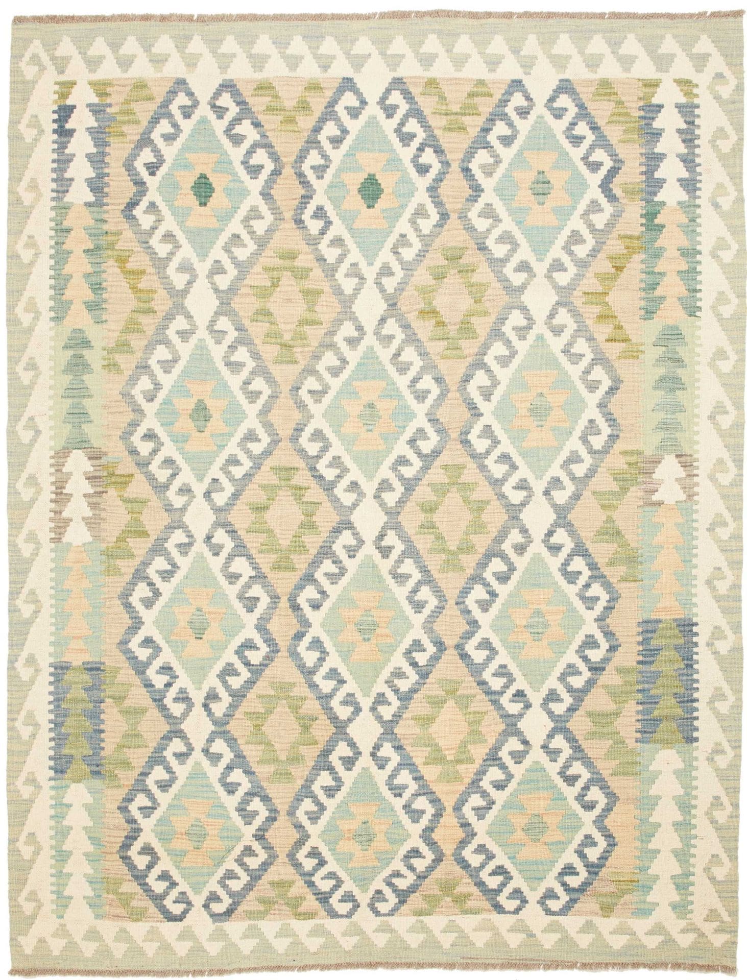 971$ In den WarenkorbHandgewebter Ghashgai Kelim Teppich aus Wolle in Naturfarbe, Maße 288 x 193 cm