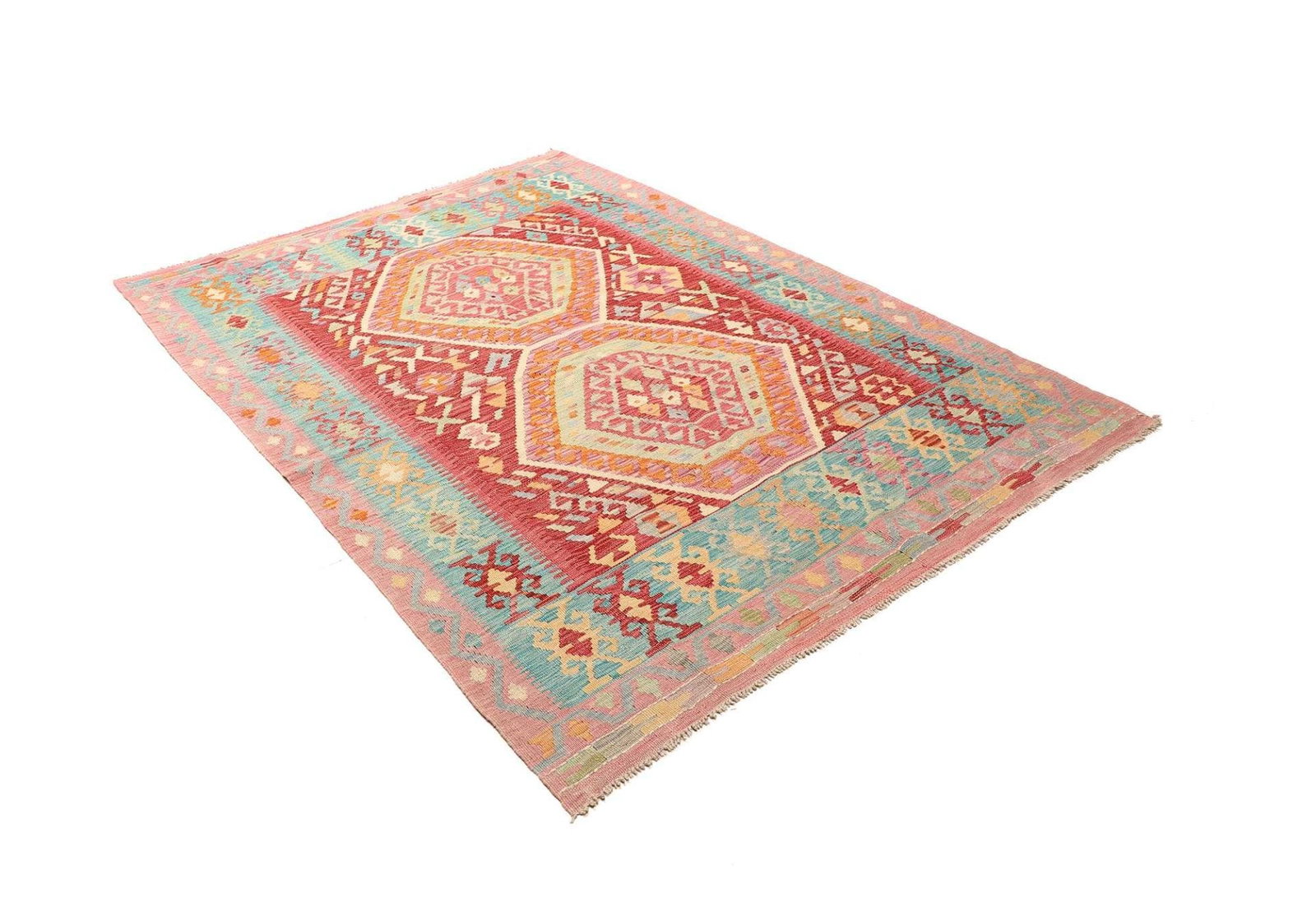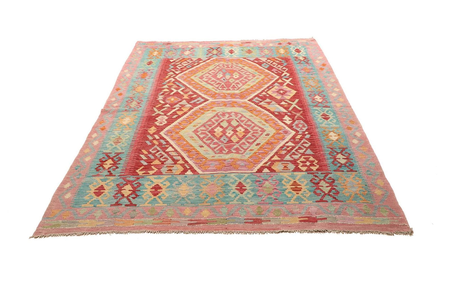 Kelim Teppich | Knotendichte: ca. 200.000 Knoten/m² | Material: 100% Schurwolle (Flor), 100% Baumwolle (Kette) | Größe: 157×216 cm | Höhe: ca. 5 mm | Herkunft: Pakistan | Handgewebte Qualität | Vielseitig einsetzbar als Teppich, Vorhang oder Wandschmuck