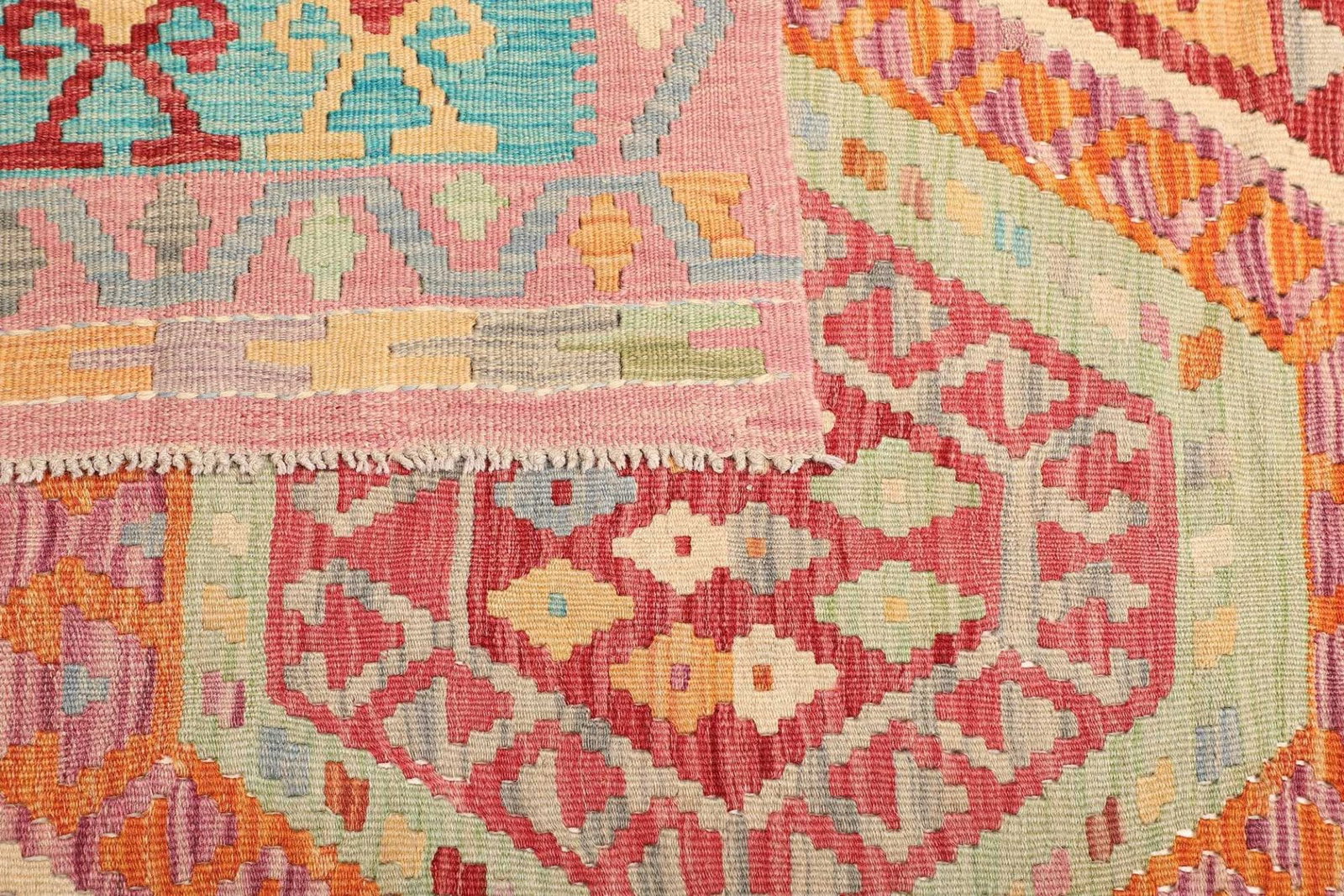 Einer der herausragenden Vorteile eines Kelim Teppichs ist seine Vielseitigkeit in der Anwendung. Er kann als Teppichboden in einem Wohnbereich, als Wandbehang oder sogar als Tischdecke verwendet werden. Dank der einzigartigen Textur und der Intensität der Farben fügt der Teppich jedem Raum Charakter und Wärme hinzu. Zudem sorgen die pflegeleichten Eigenschaften von Schurwolle dafür, dass der Teppich auch in stark frequentierten Bereichen ideal ist.