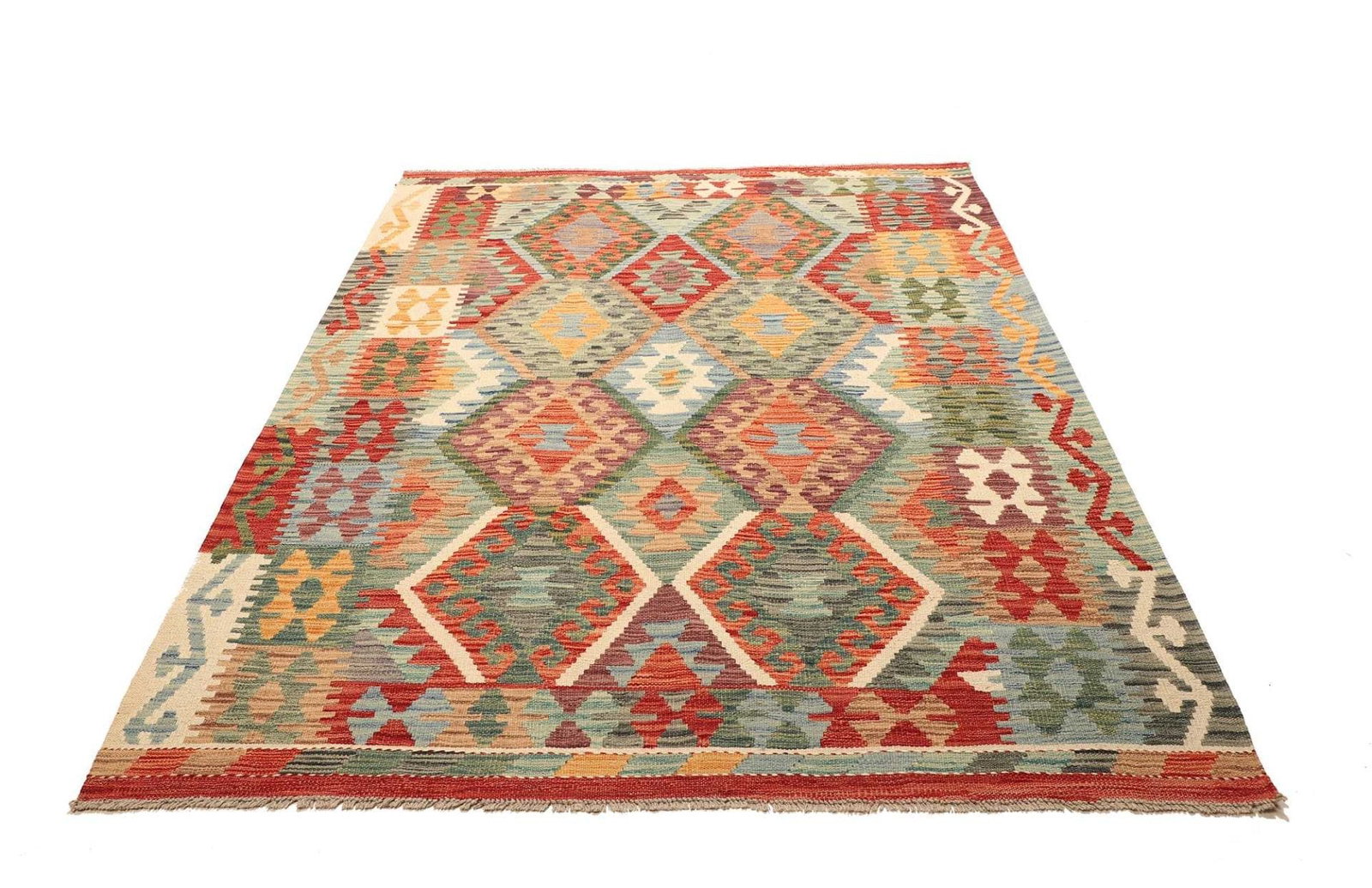 Kelim Teppich 158 x 201cm, handgewebt, rustikales Flair, Wolle