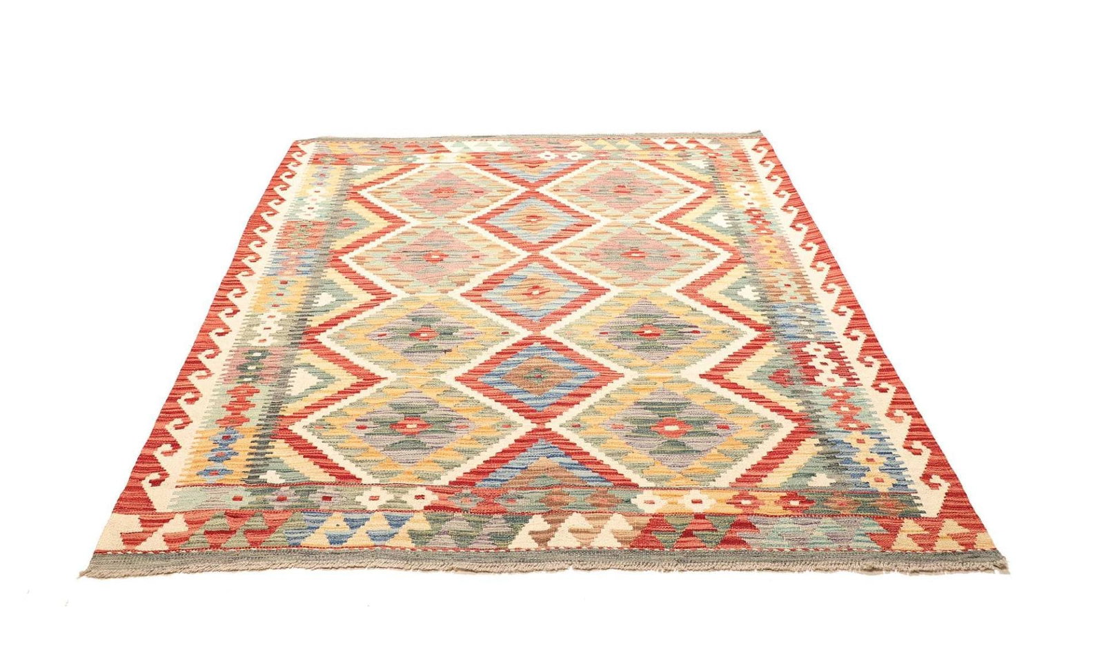 Kelim Teppich | Knotendichte: ca. 200.000 Knoten/m² | Material: 100% Schurwolle und 100% Baumwolle | Größe: 159×194 cm | Höhe: ca. 5 mm | Herkunft: Pakistan | Zustand: Handgewebte Qualität mit rustikalem Flair