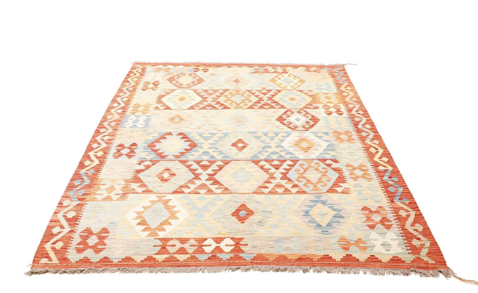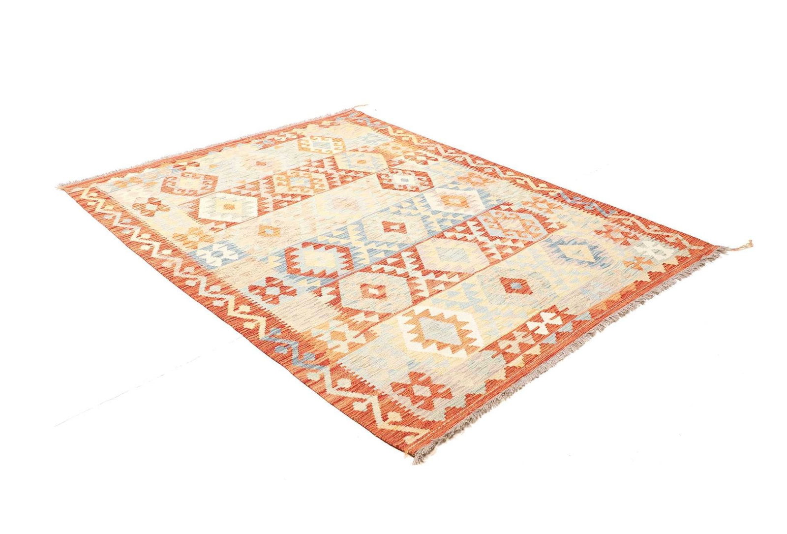 Kelim Teppich 159 x 210cm, handgewebt, afghanisches Design, Wolle