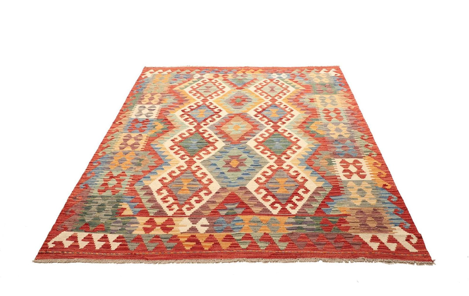 Kelim 205 x 150 cm – handgewebt mit doppeltem Muster, vielseitig einsetzbar als Teppich oder Wandbehang – handgewebt, Orientteppich