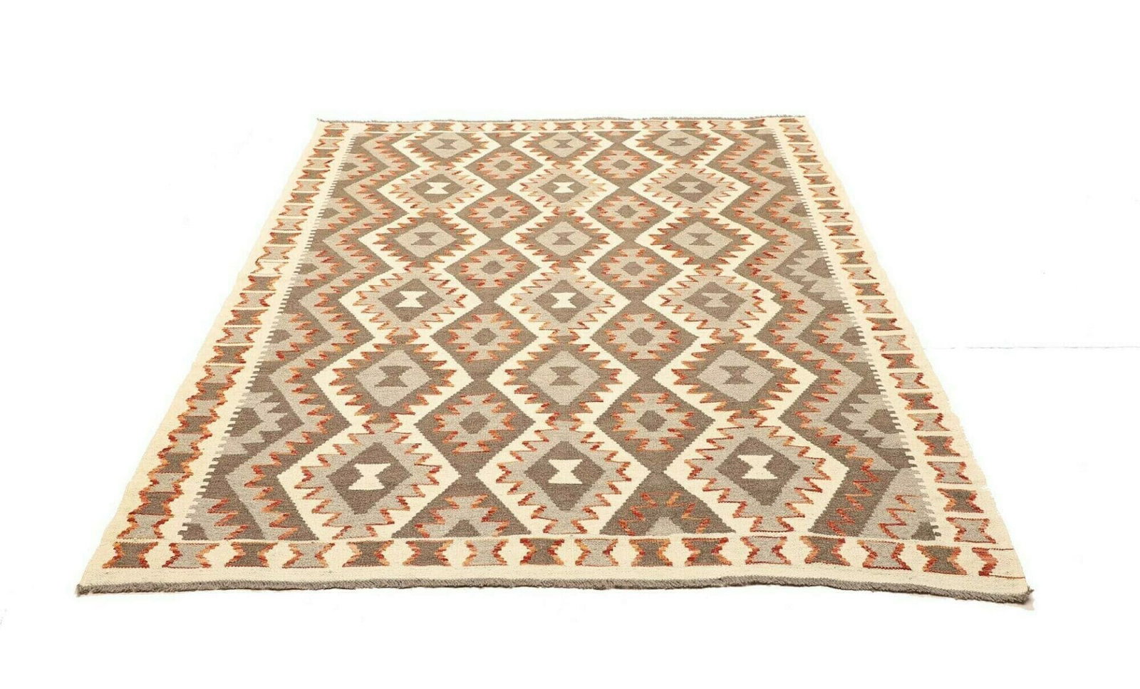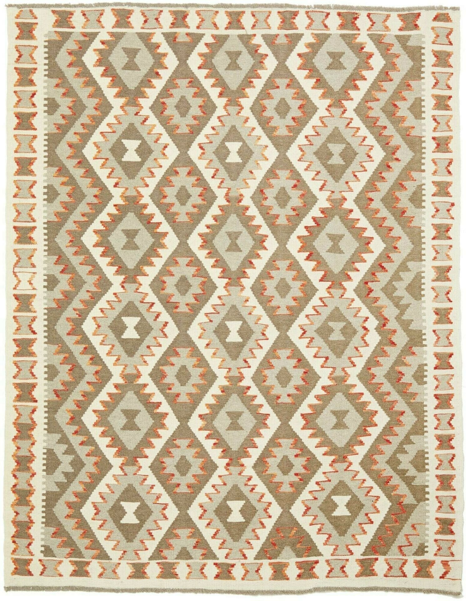 1040$ In den WarenkorbHandgewebter Ghashgai Kelim Teppich aus Wolle in Naturfarbe, 293 x 198 cm