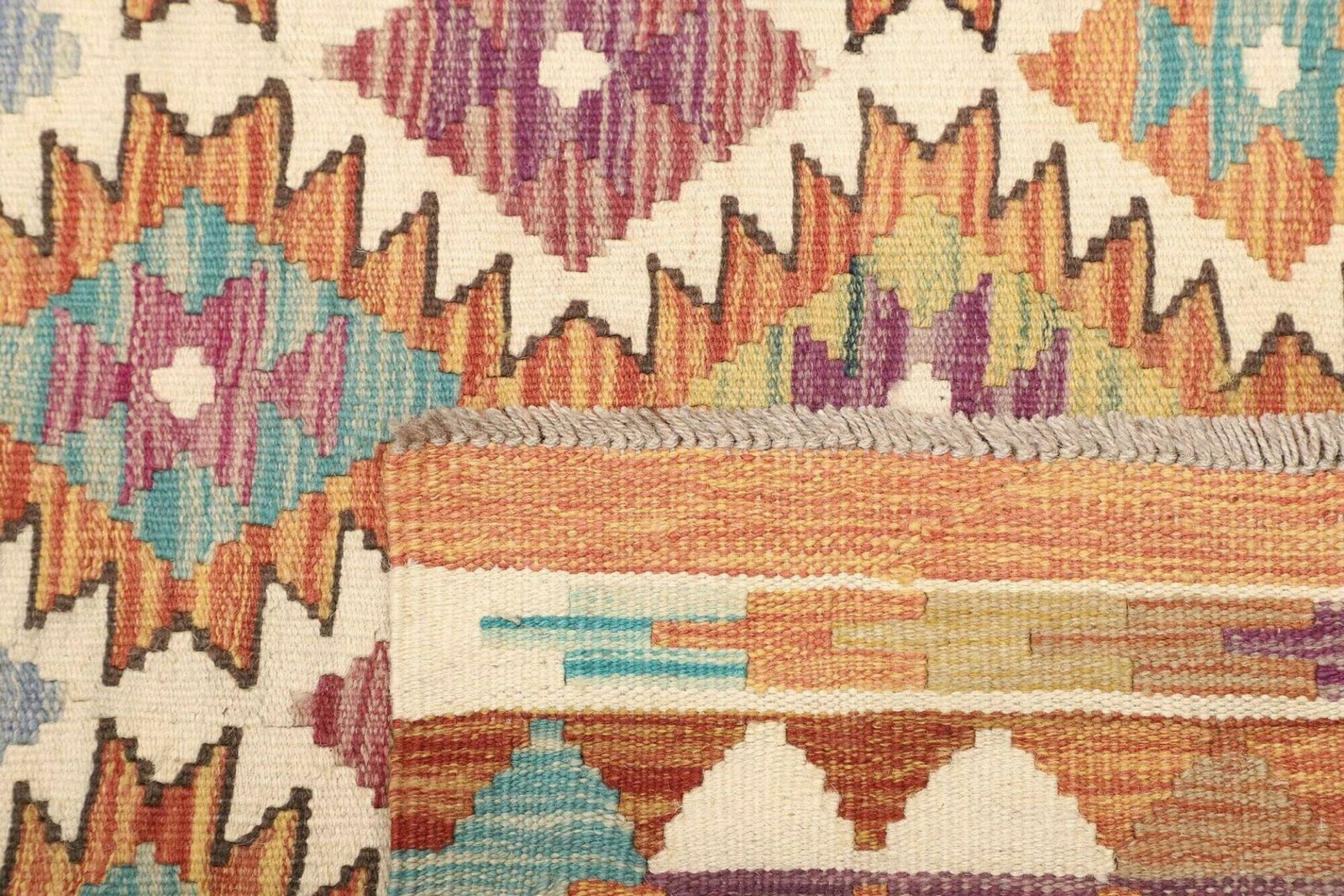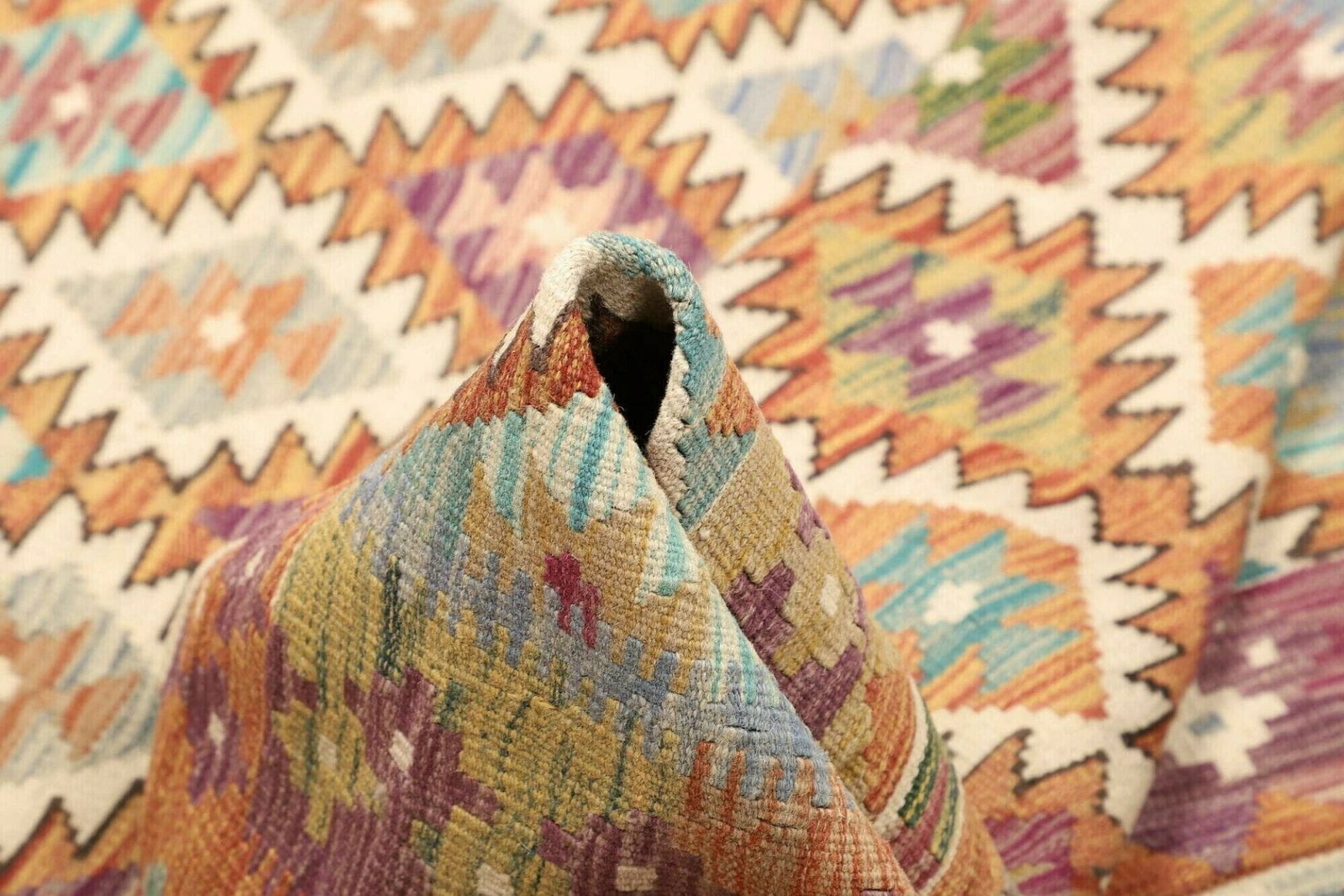 Die handgewebte Qualität dieses Kelim Teppichs macht ihn nicht nur zu einem optischen Genuss, sondern auch zu einem nachhaltigen Produkt. Durch die Verwendung von natürlichen Materialien und die traditionelle Herstellungsweise hat dieser Teppich einen geringen ökologischen Fußabdruck. Zudem ist jeder Kelim ein Unikat, was bedeutet, dass Sie ein Stück Geschichte und Kunst in Ihr Zuhause bringen.