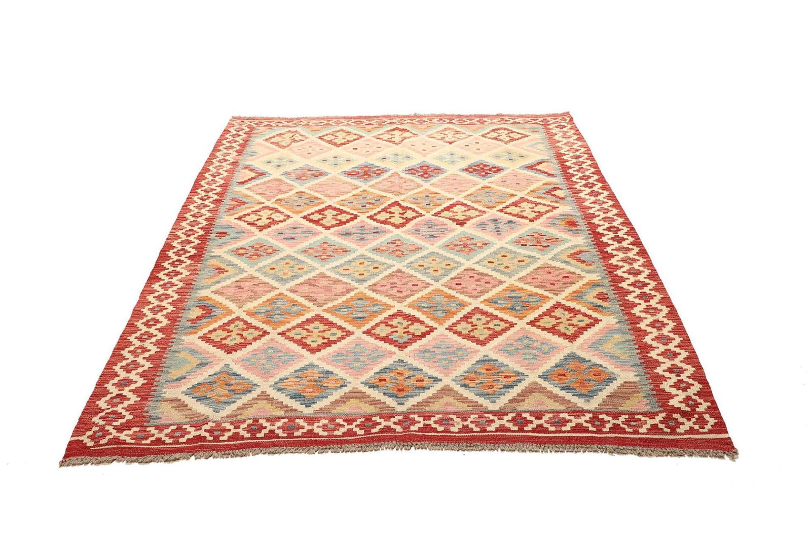 Kelim Teppich 161 x 204 cm, handgewebt, rustikales Flair, Wolle
