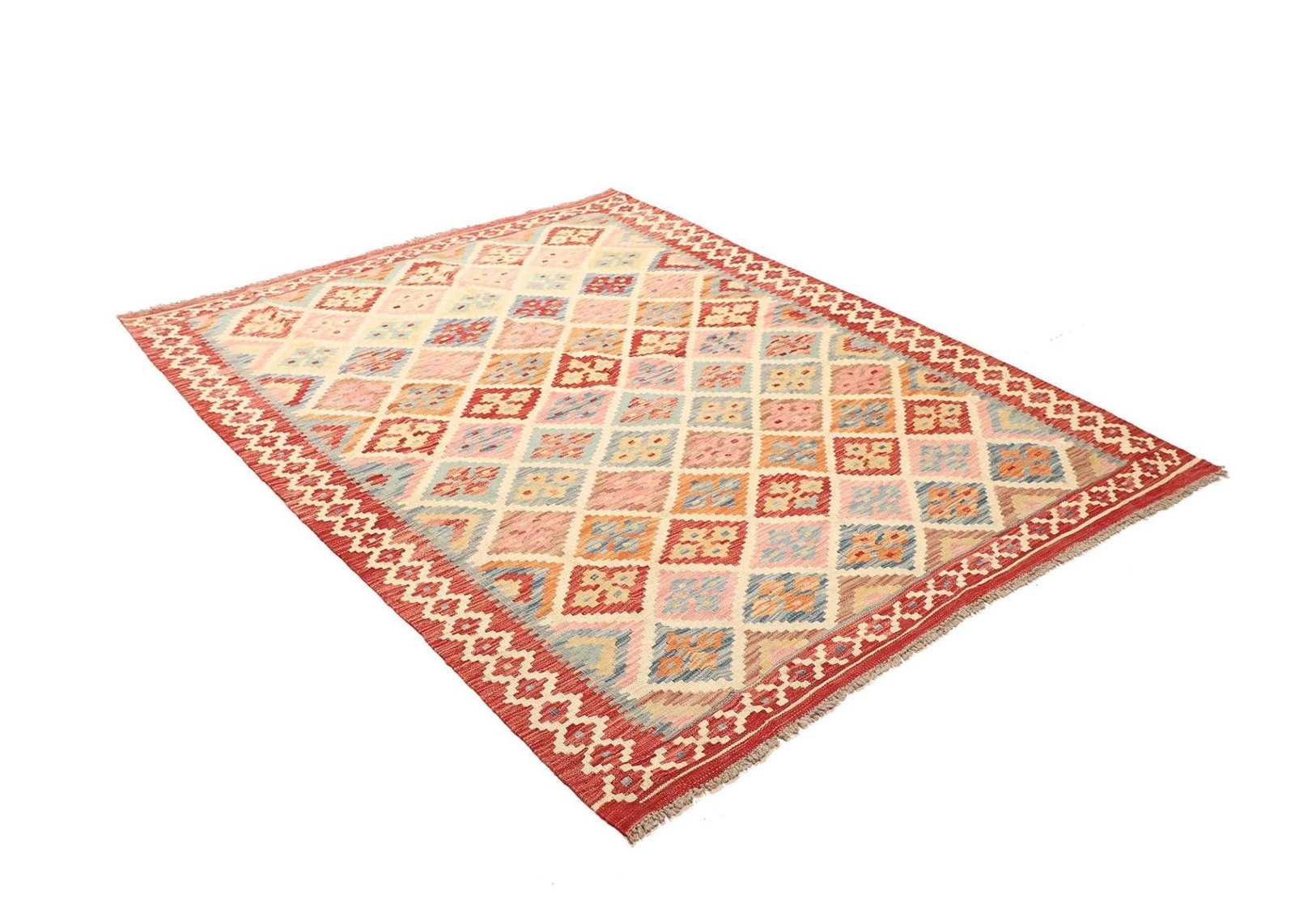 Kelim 206 x 145 cm – Gewebt mit identischen Mustern auf Vorder- und Rückseite, ideal als Wandbehang, handgewebt, Orientteppich