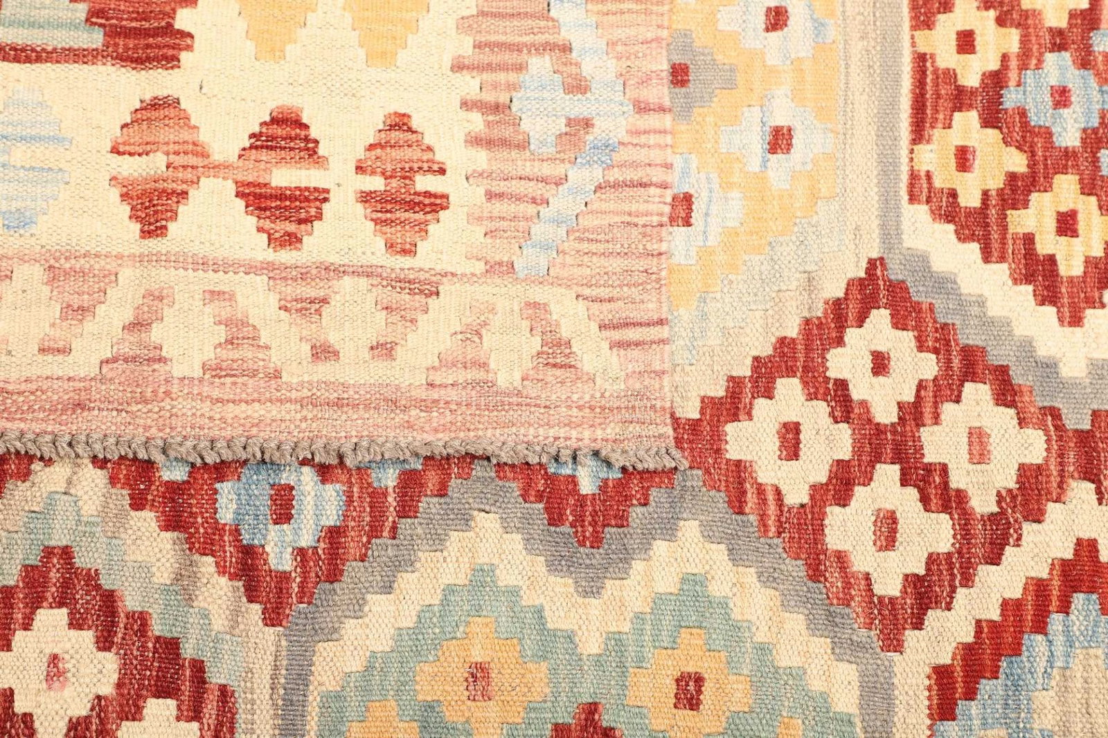 971$ In den WarenkorbKelim 206 x 145 cm – Gewebt mit identischen Mustern auf Vorder- und Rückseite, ideal als Wandbehang, handgewebt, Orientteppich
